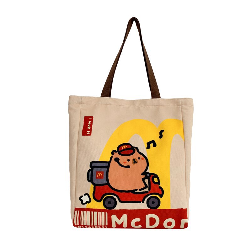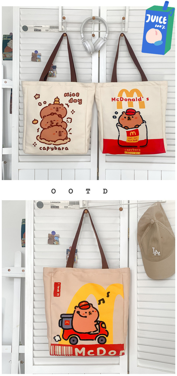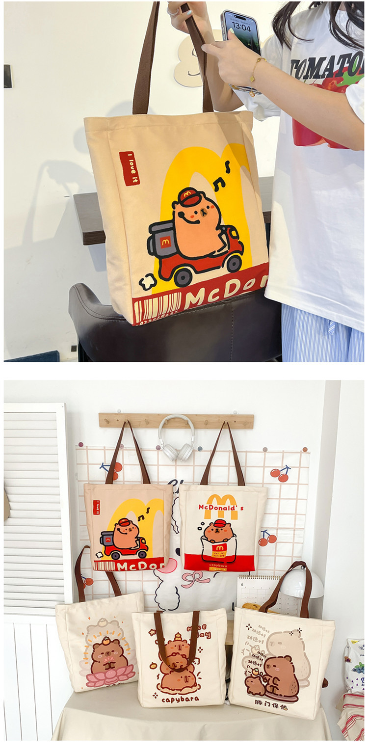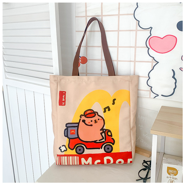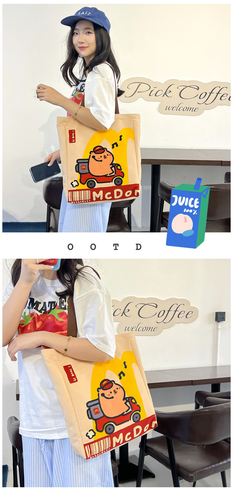 작은 신선한 만화 카피 발라 캔버스 가방 2024 새로운 간단한 학생 남성 가방 대용량 토트 백 여성스토어 가기