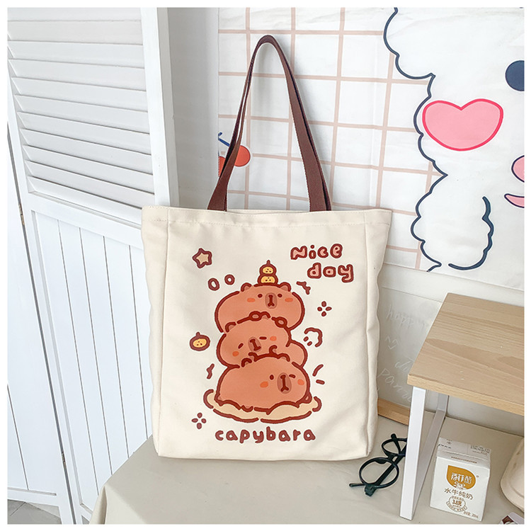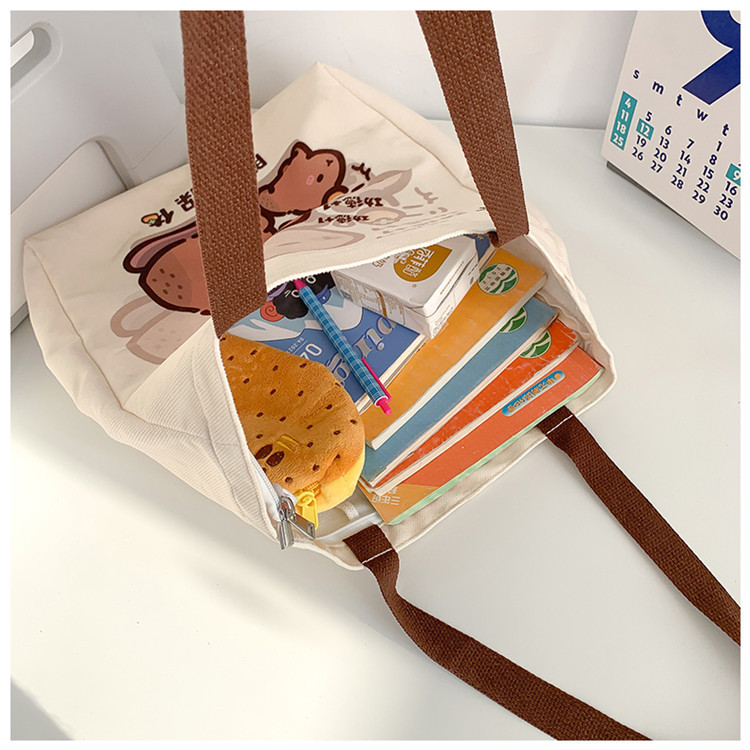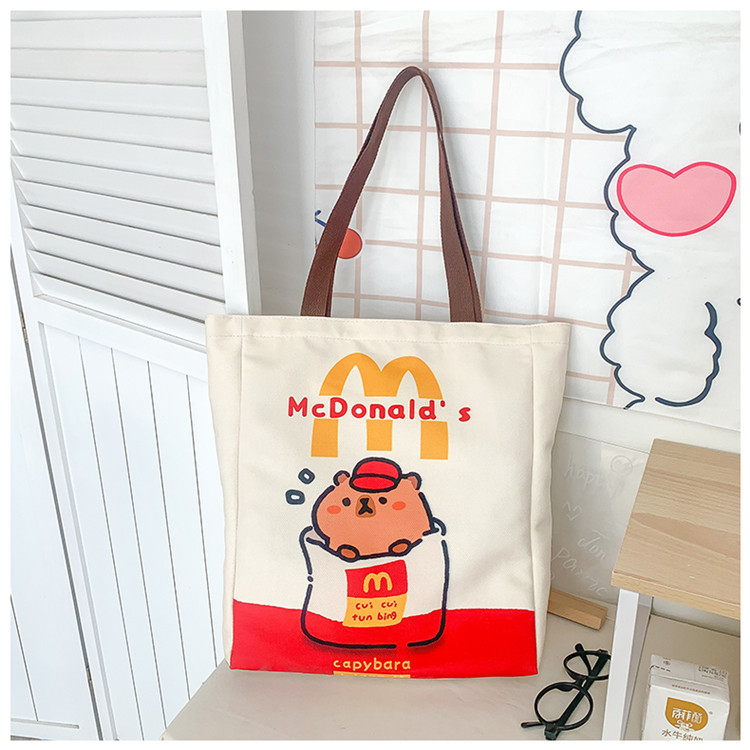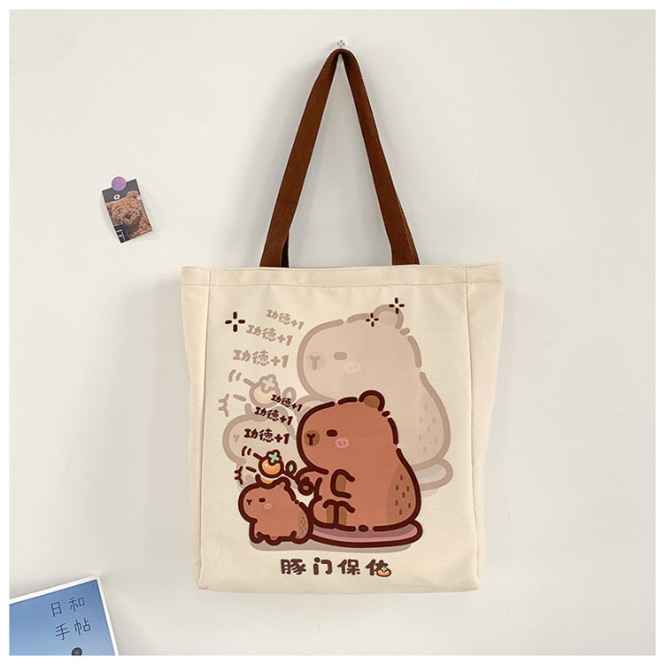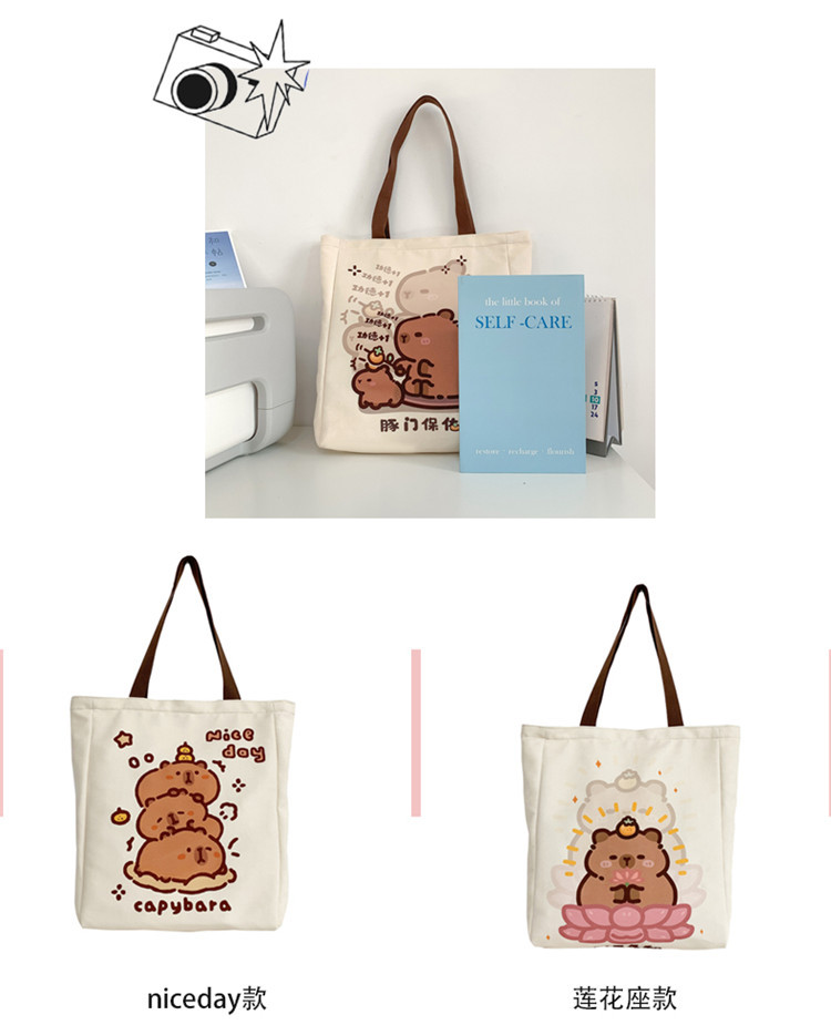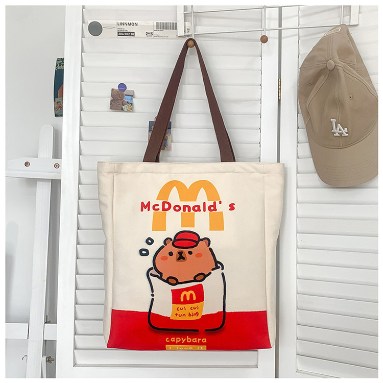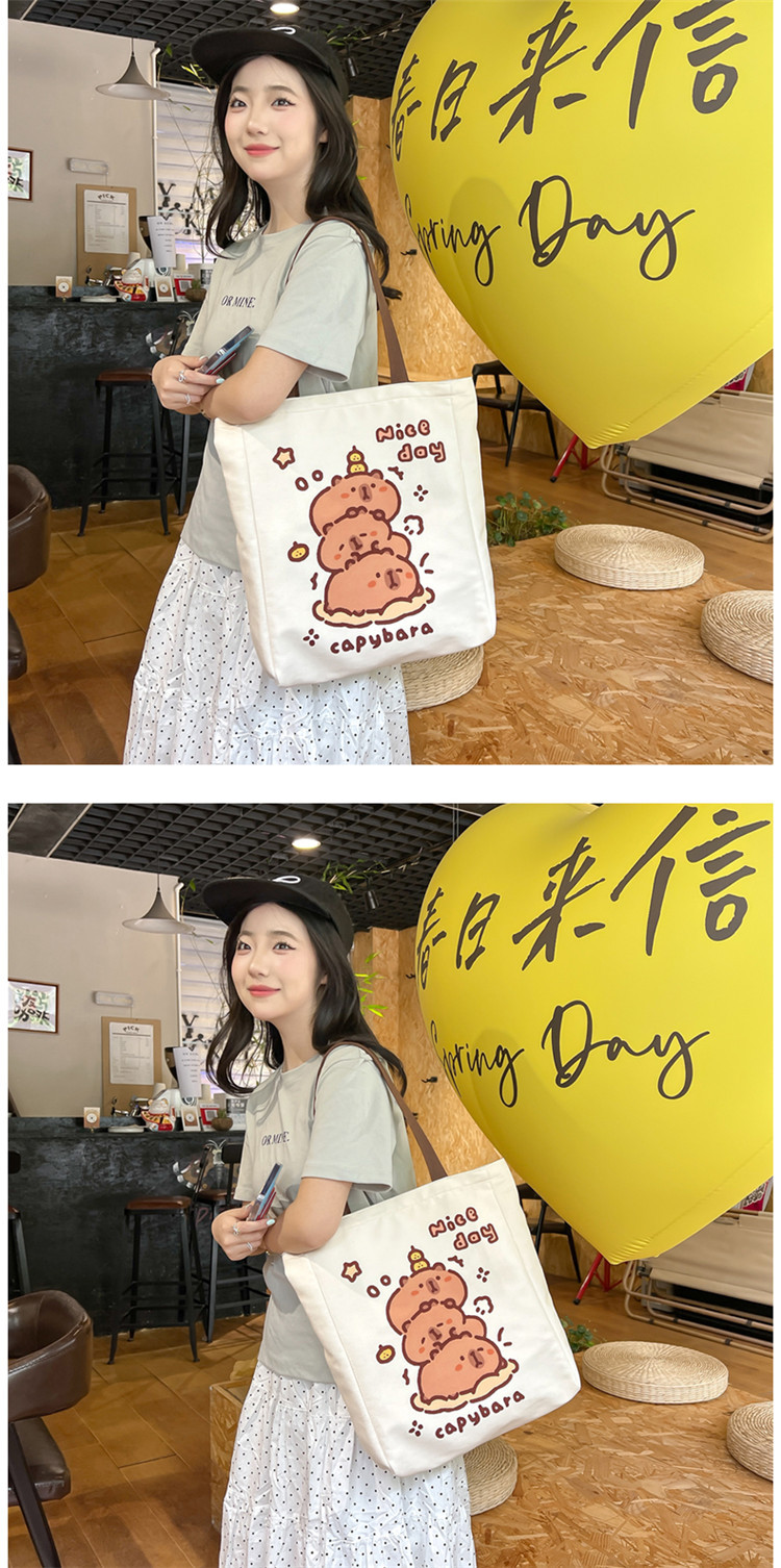 작은 신선한 만화 카피 발라 캔버스 가방 2024 새로운 간단한 학생 남성 가방 대용량 토트 백 여성스토어 가기