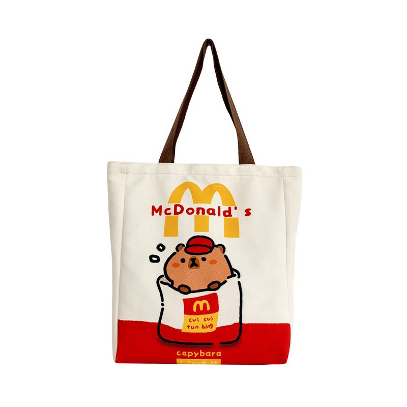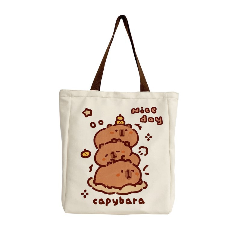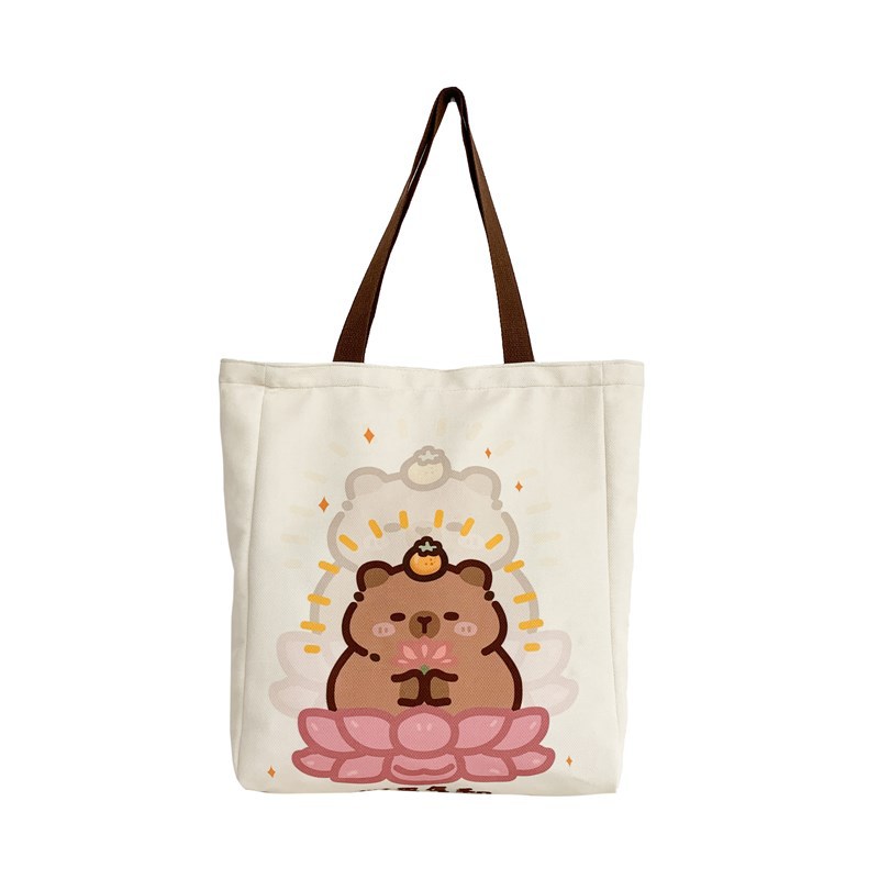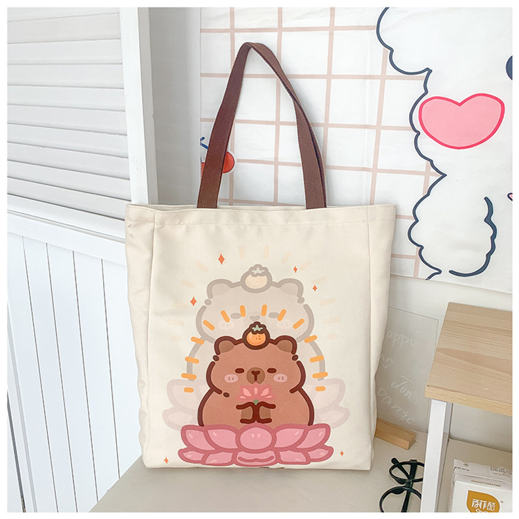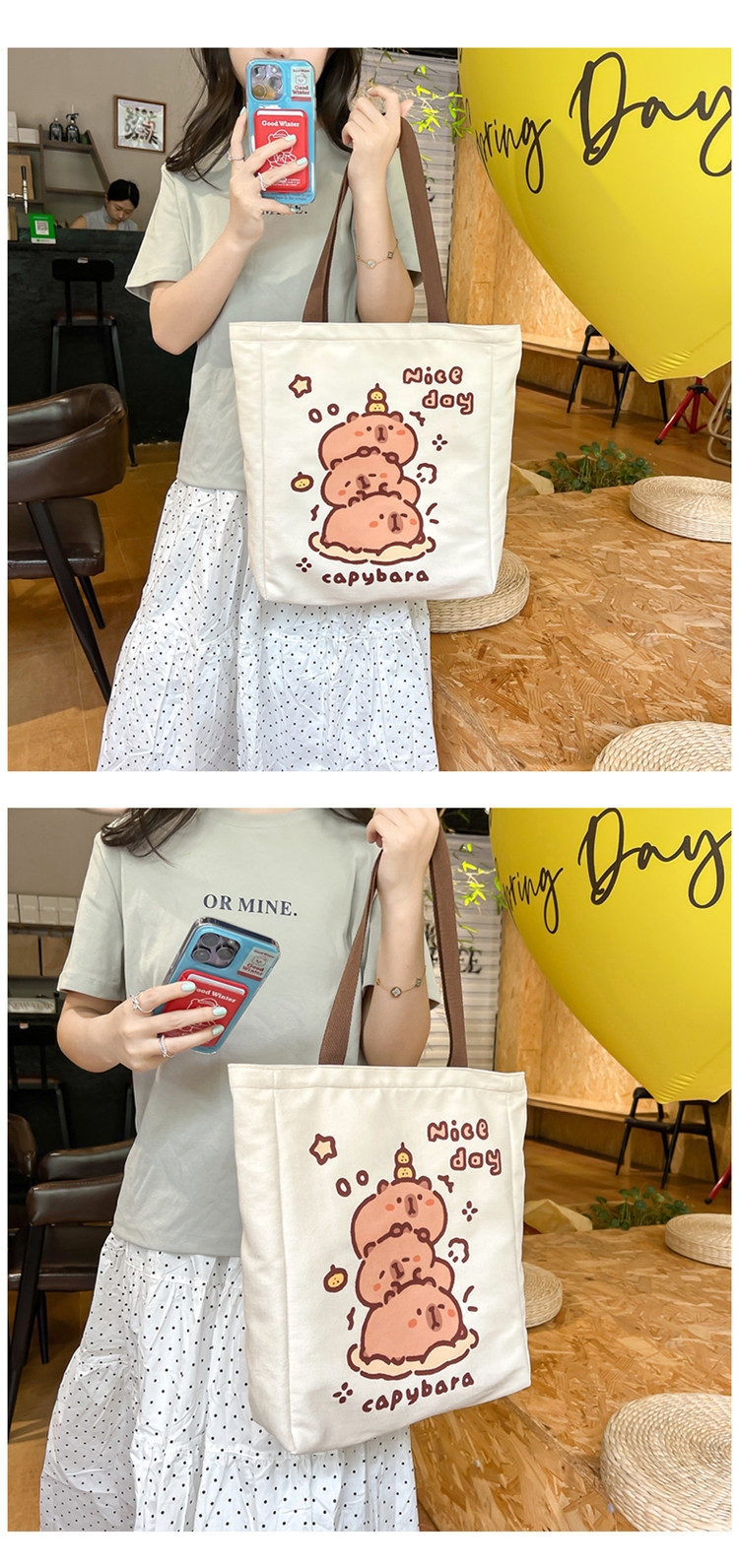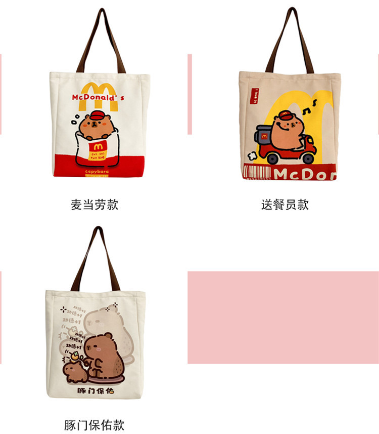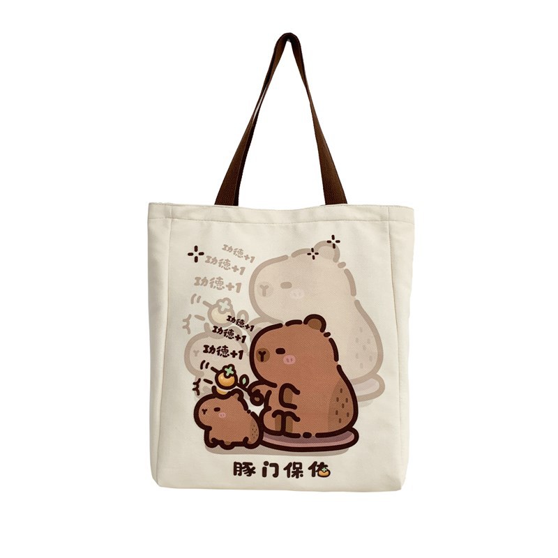 작은 신선한 만화 카피 발라 캔버스 가방 2024 새로운 간단한 학생 남성 가방 대용량 토트 백 여성스토어 가기