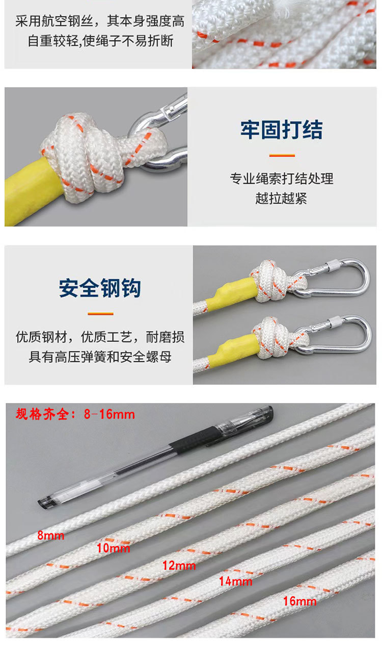 강철 와이어 코어 구조 안전 로프 고층 화재 가구 긴급 구조 탈출 구명 로프 높은 고도 두꺼운 안전 로프
