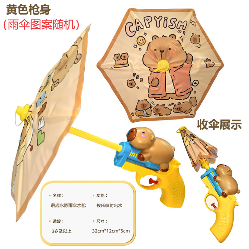 • 노란색 귀여운 카피바라 우산 물총 (우산 패턴 랜덤)