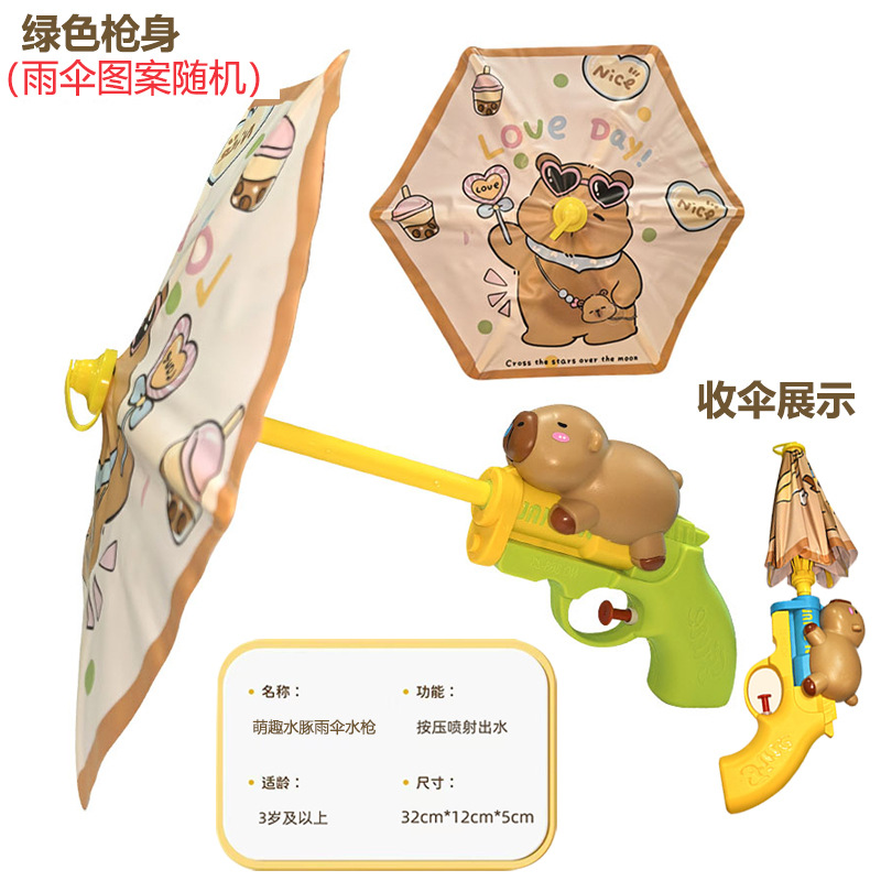 • 녹색 귀여운 카피바라 우산 물총 (우산 패턴 랜덤)
