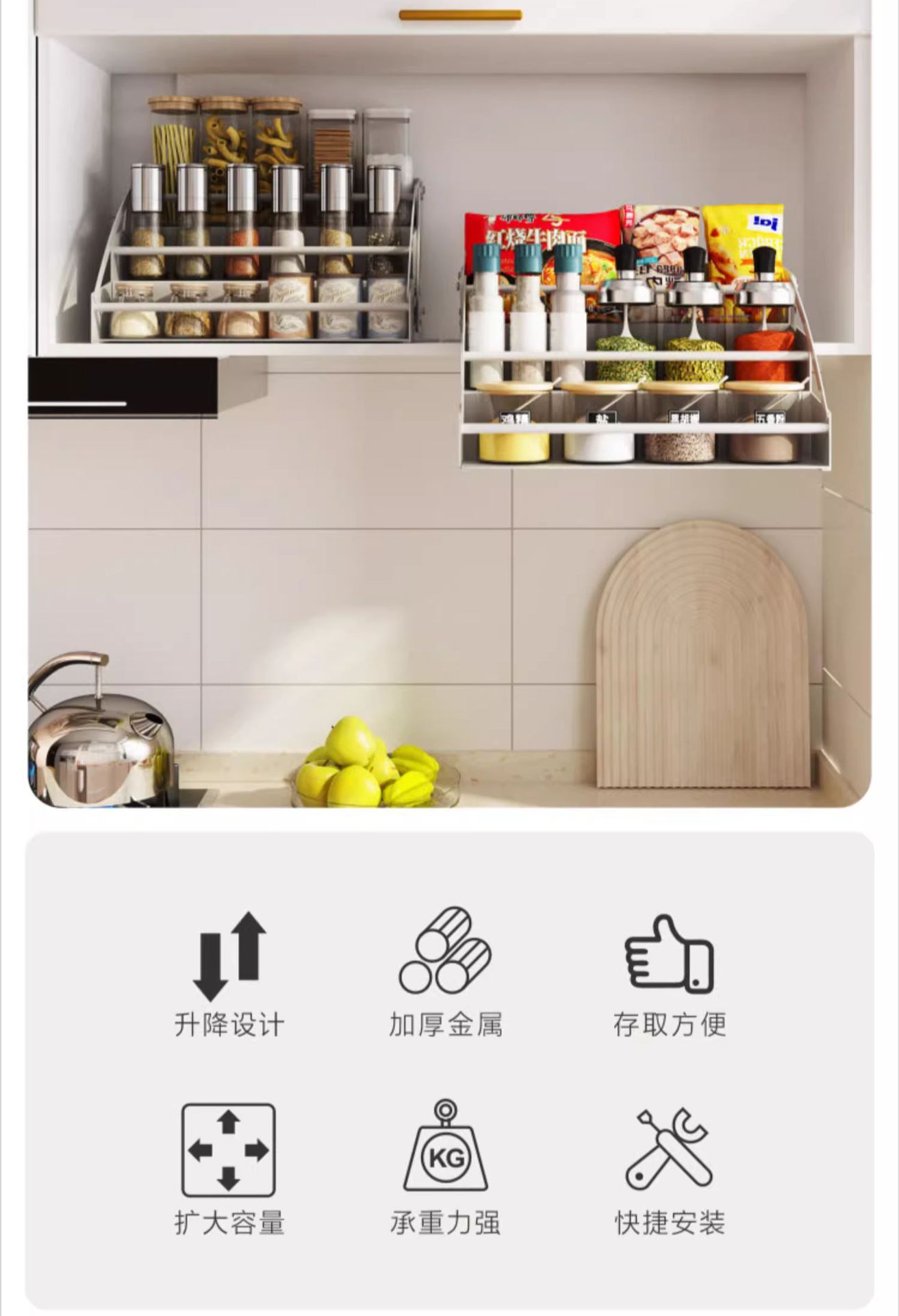 리프팅 캐비닛 브래킷 주방 랙 컨디셔닝 랙 풀 다운 두꺼운 조미료 랙 캐비닛 리프팅