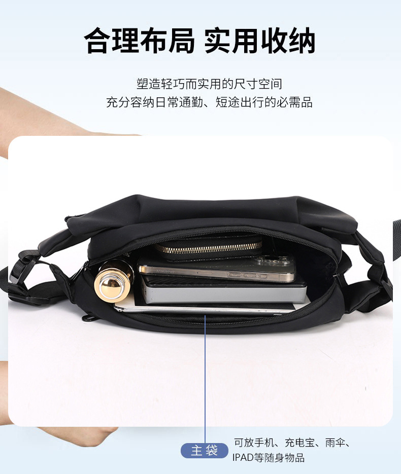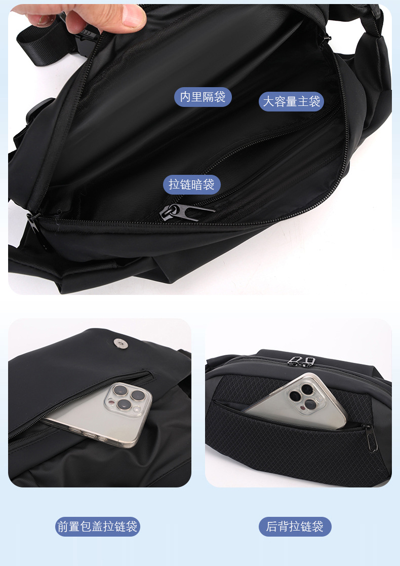 2024 여름 한국 유행 배낭 남자 방수 옥스포드 나일론 천 가슴 가방 캐주얼 올 매치 허리 가방 어깨 크로스 바디 백