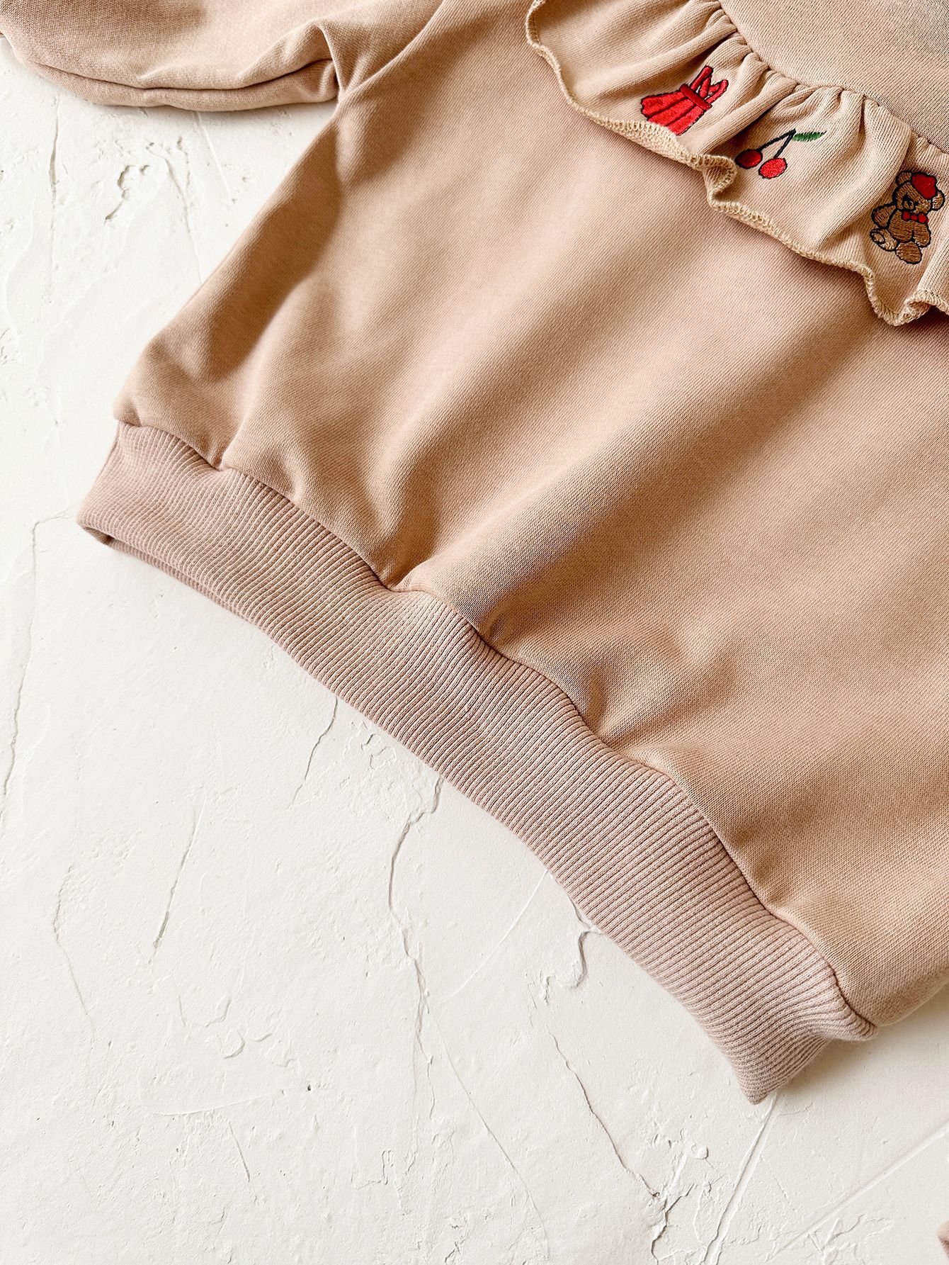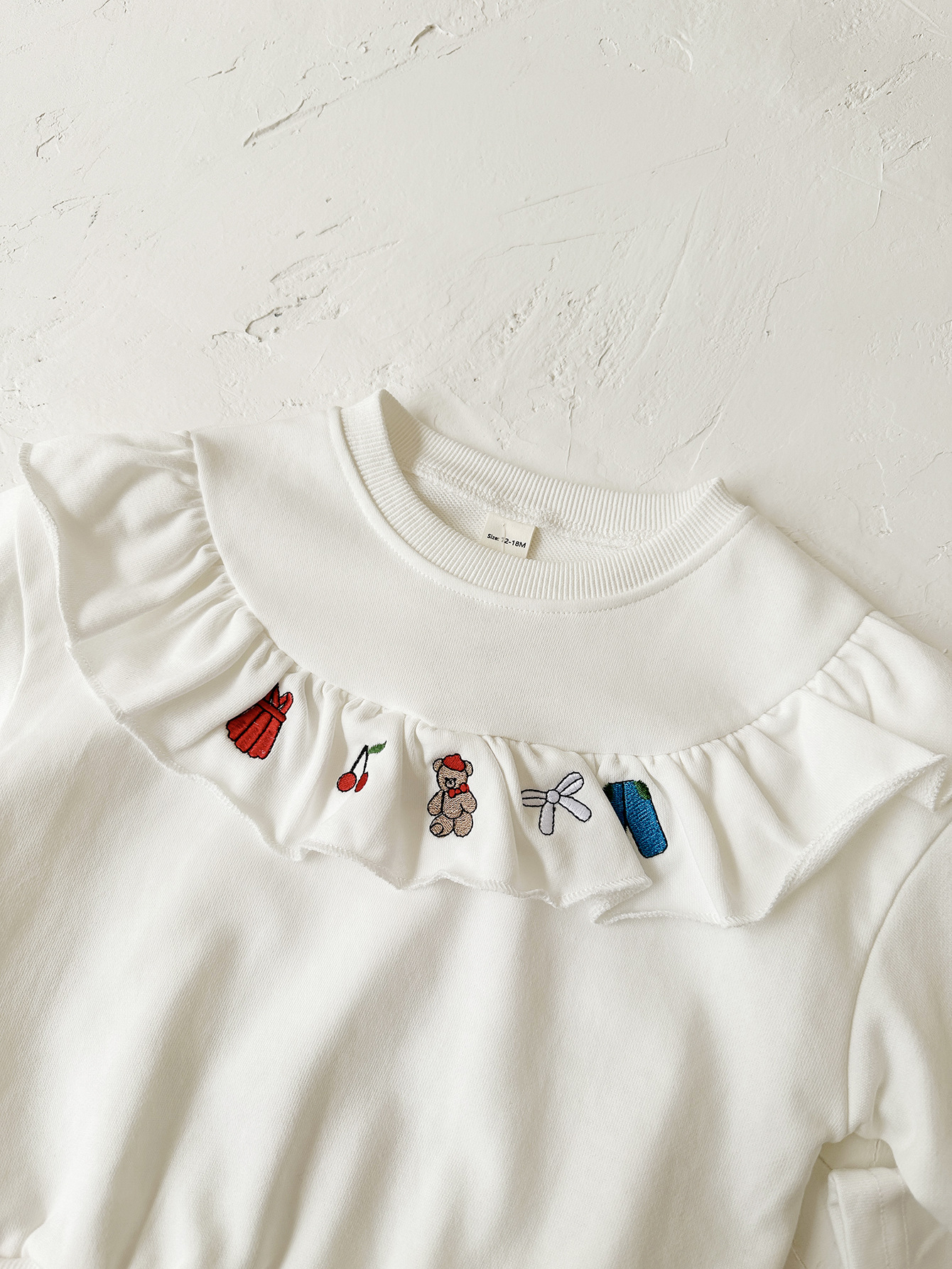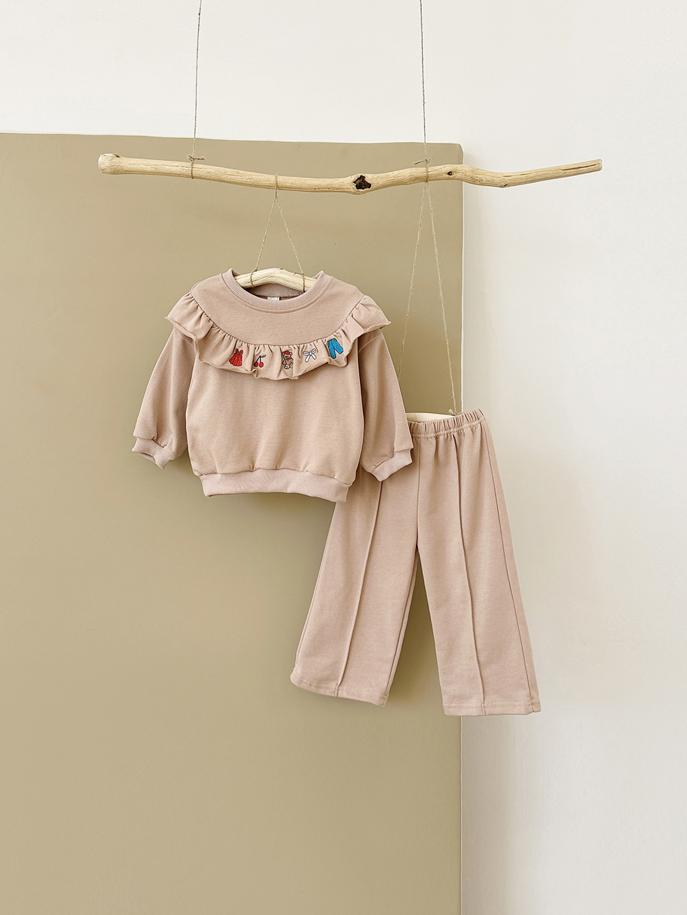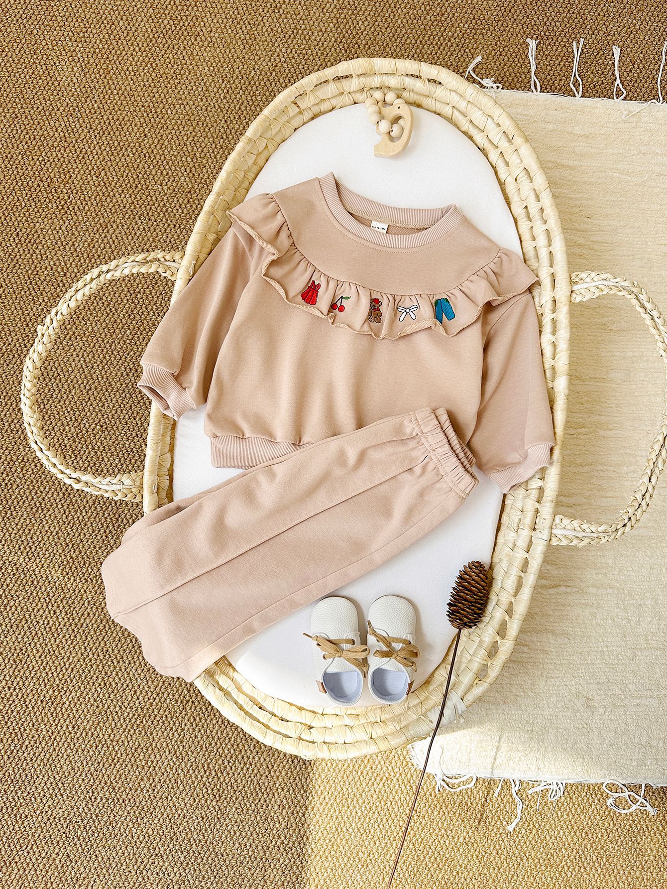 INS 한국 스타일 봄과 가을 소녀 자수 러플 스웨트 셔츠 투피스 세트 아기 크루 넥 풀오버 긴 소매 세트 크로스 보더스토어 가기