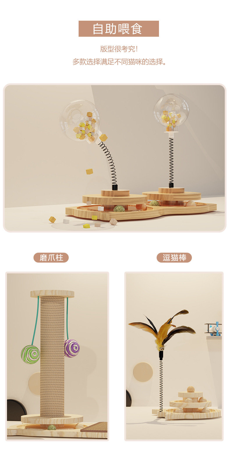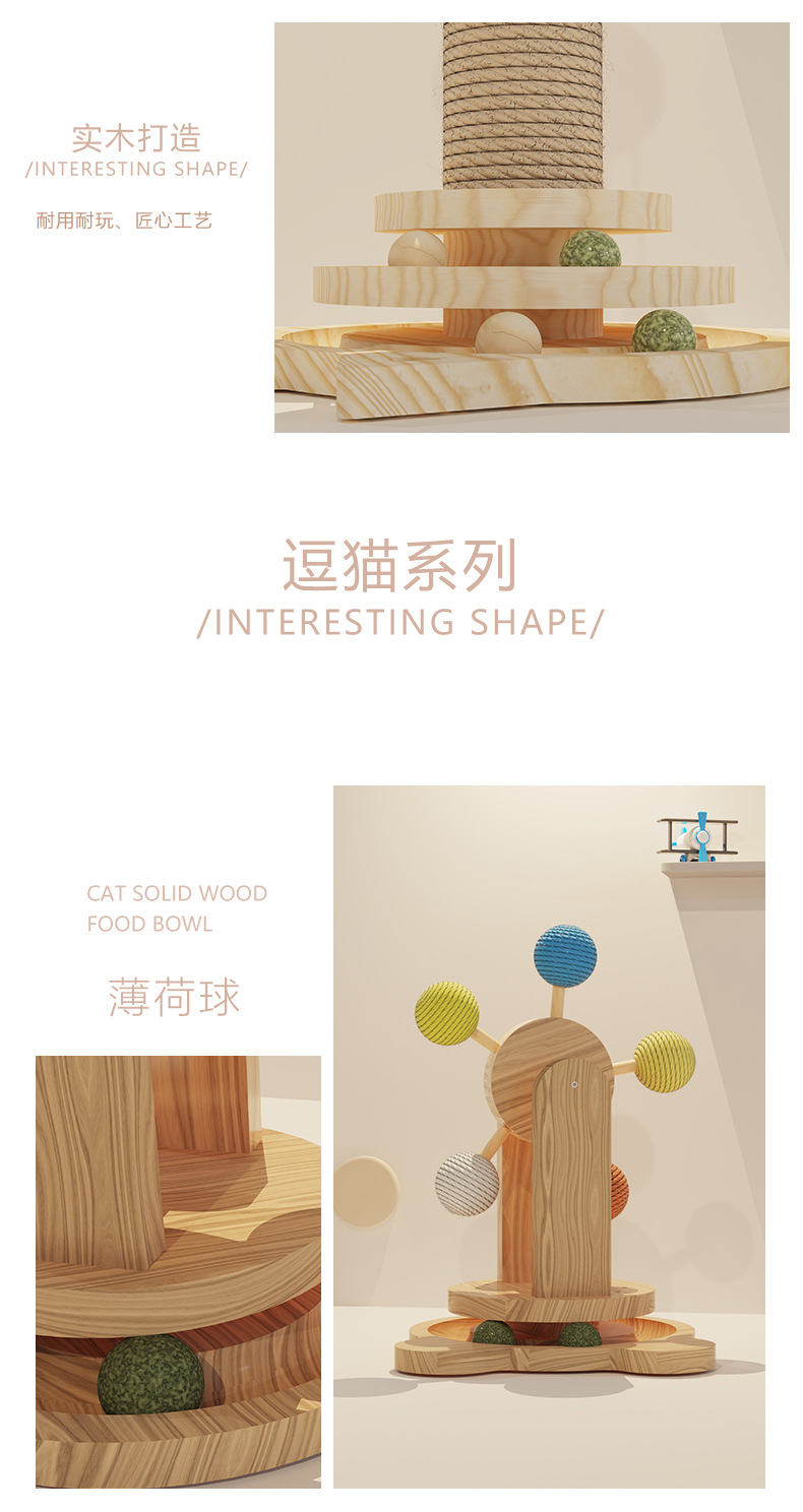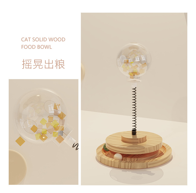 원목 고양이 장난감 회전판, 고양이 사료통, 교육용 흔들림 방지 공, 사료 공급 장치, 애완동물 선물스토어 가기