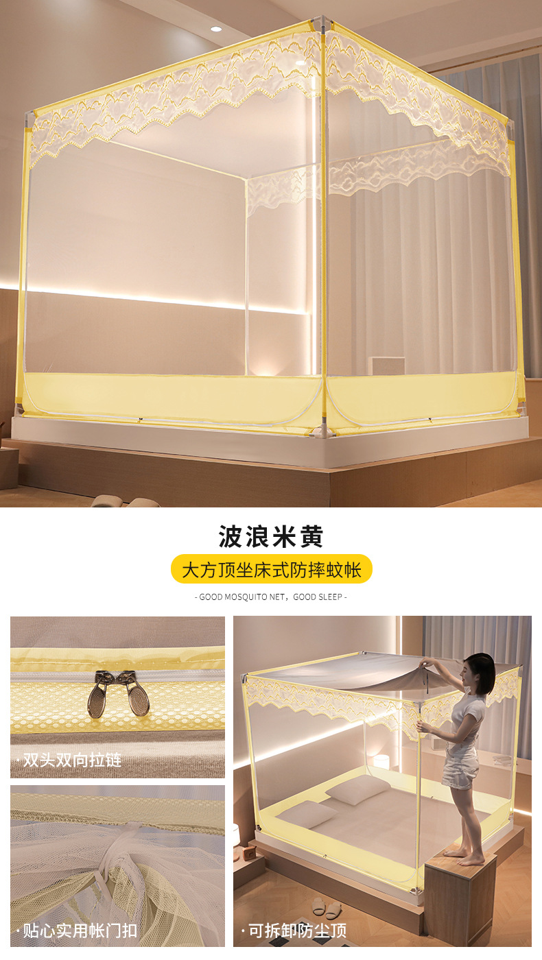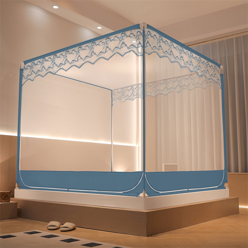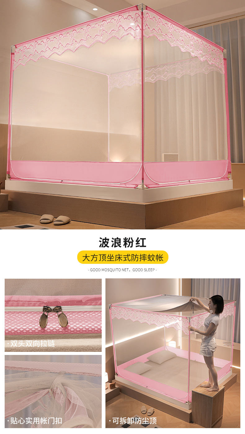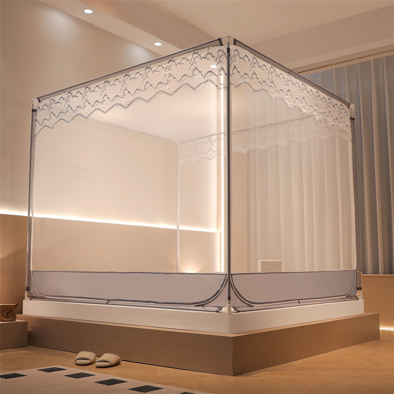 설치 무료 몽골 유르트 모기 방지 브래킷 홈 암호화 두꺼운 침대 커튼 웨이브 스타일 간단한 모기장 학생 및 어린이