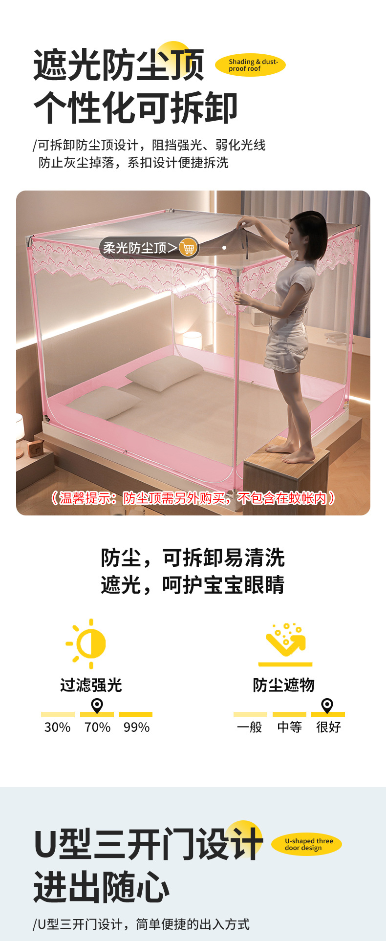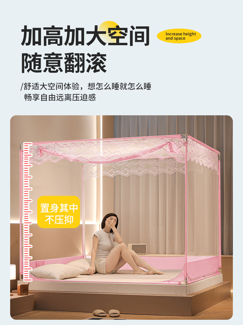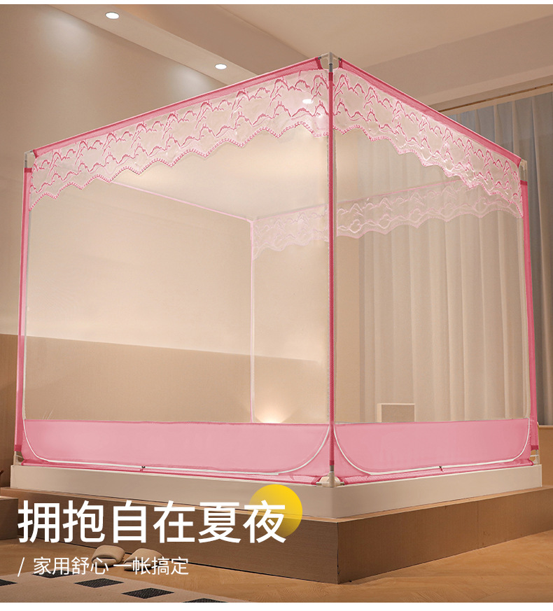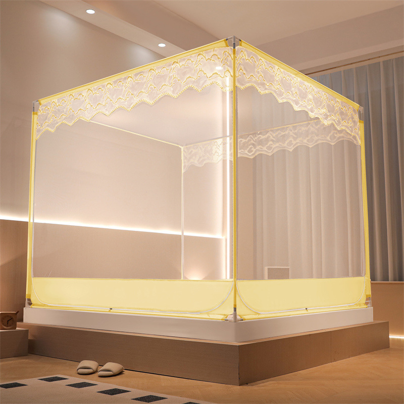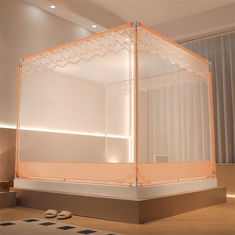 설치 무료 몽골 유르트 모기 방지 브래킷 홈 암호화 두꺼운 침대 커튼 웨이브 스타일 간단한 모기장 학생 및 어린이