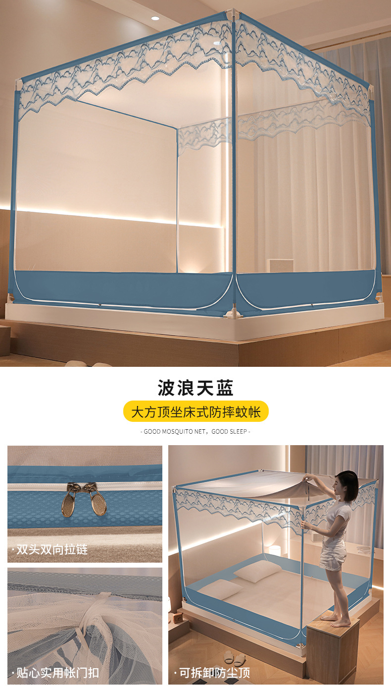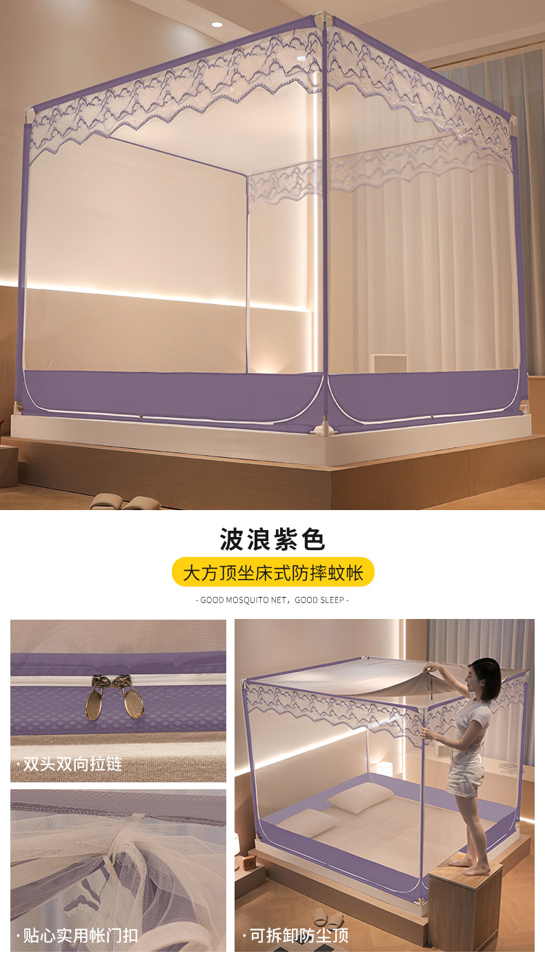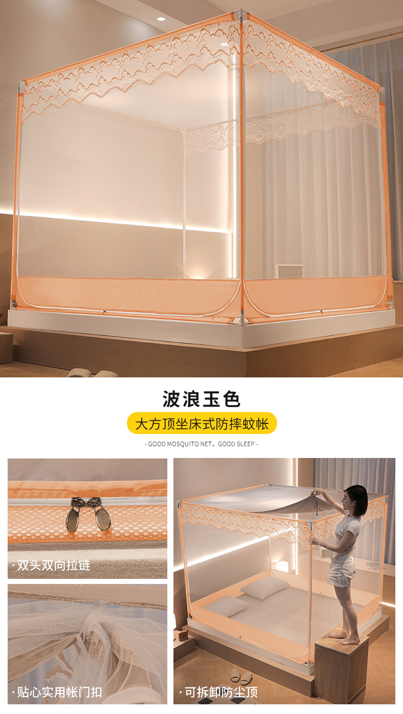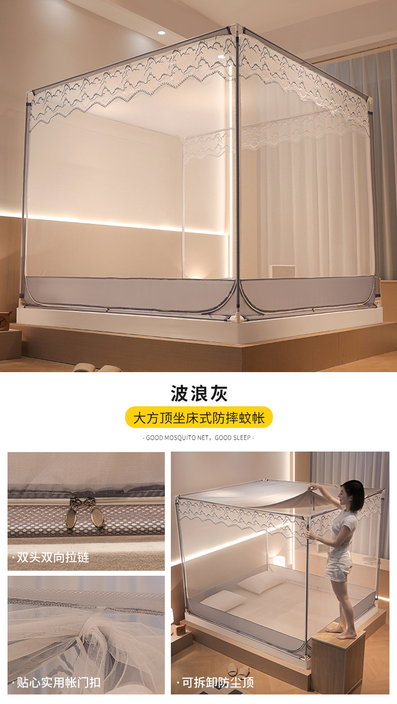 설치 무료 몽골 유르트 모기 방지 브래킷 홈 암호화 두꺼운 침대 커튼 웨이브 스타일 간단한 모기장 학생 및 어린이스토어 가기