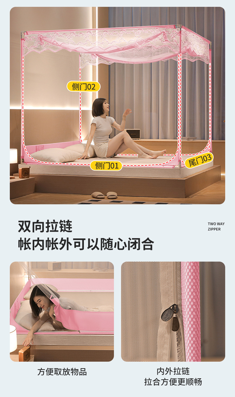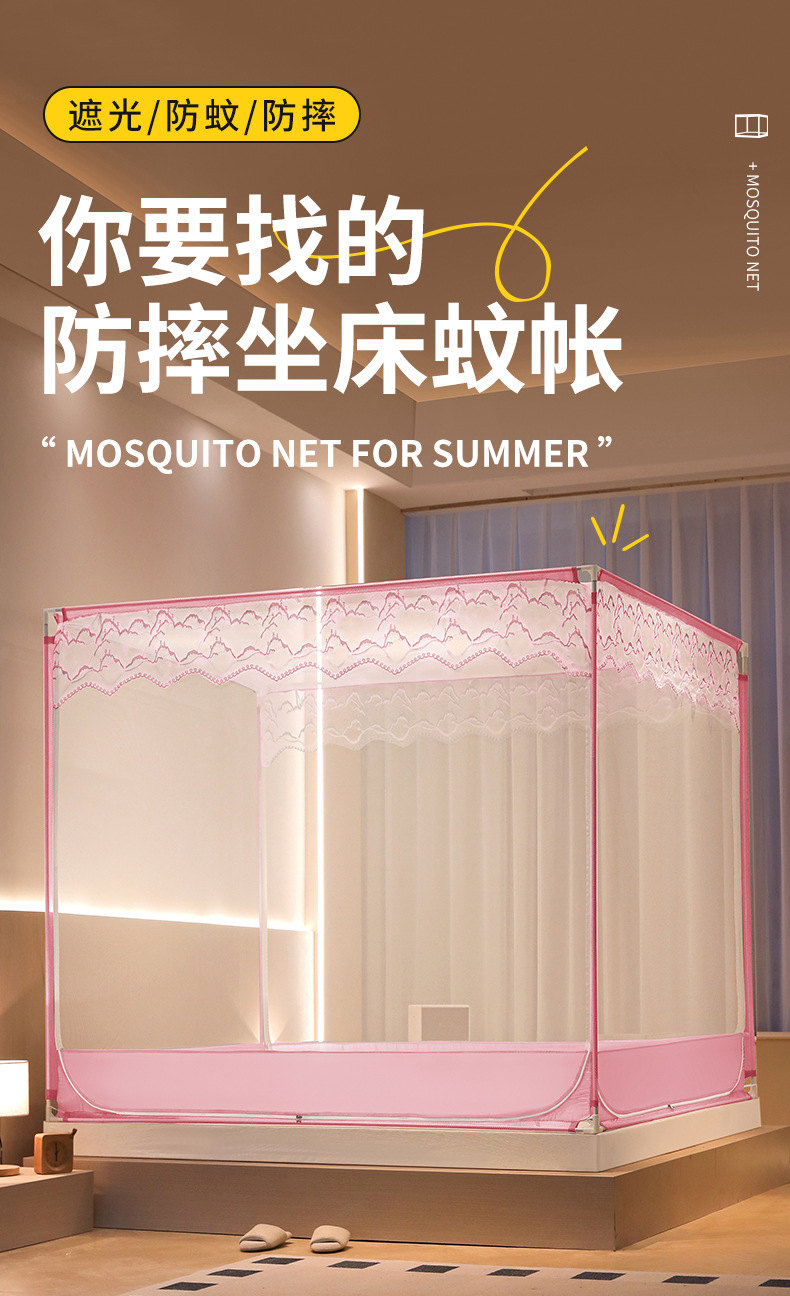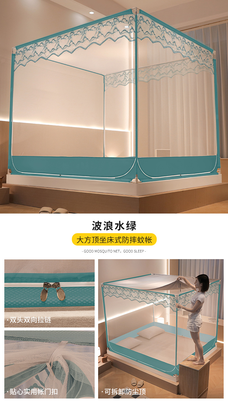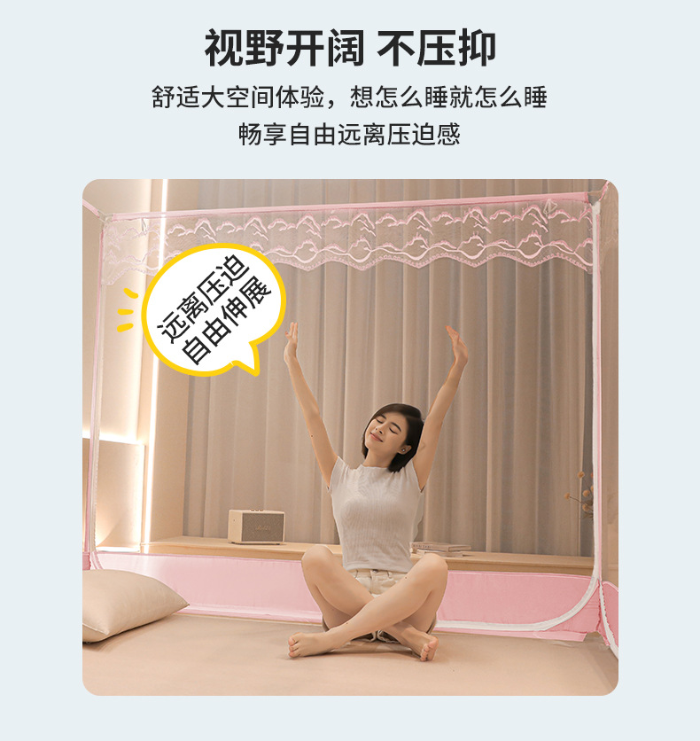 설치 무료 몽골 유르트 모기 방지 브래킷 홈 암호화 두꺼운 침대 커튼 웨이브 스타일 간단한 모기장 학생 및 어린이스토어 가기