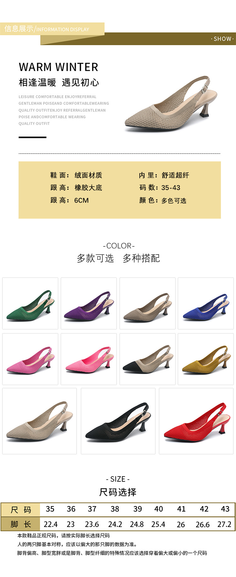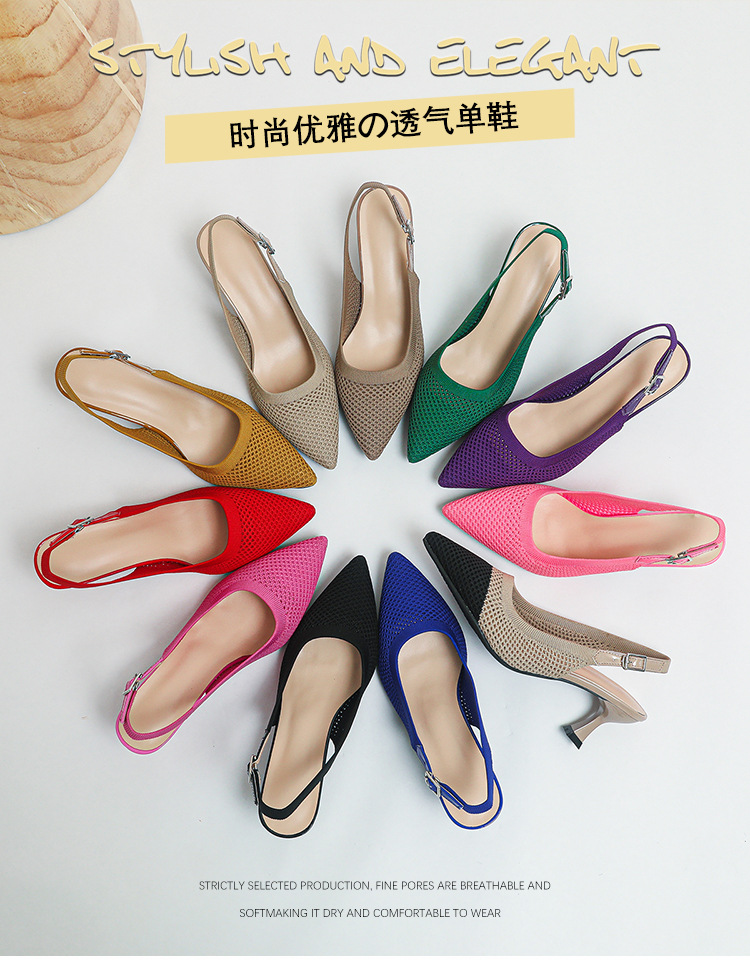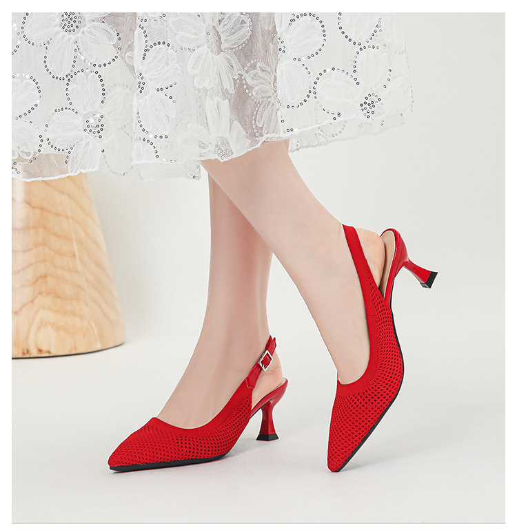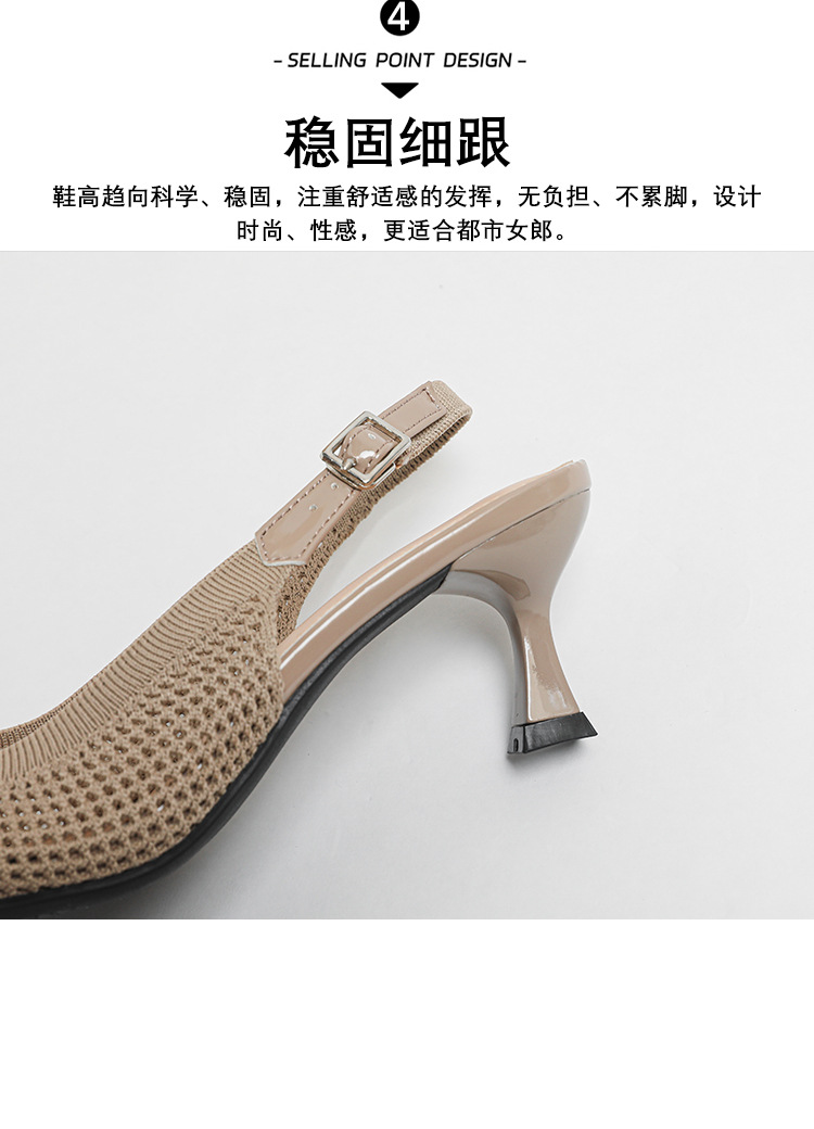 여성 샌들 (굽 높이 6CM) 여름 플라이 니트 패션 뾰족코 뒤쪽 스트랩 하이힐 편안한 뾰족코 얇은 굽스토어 가기