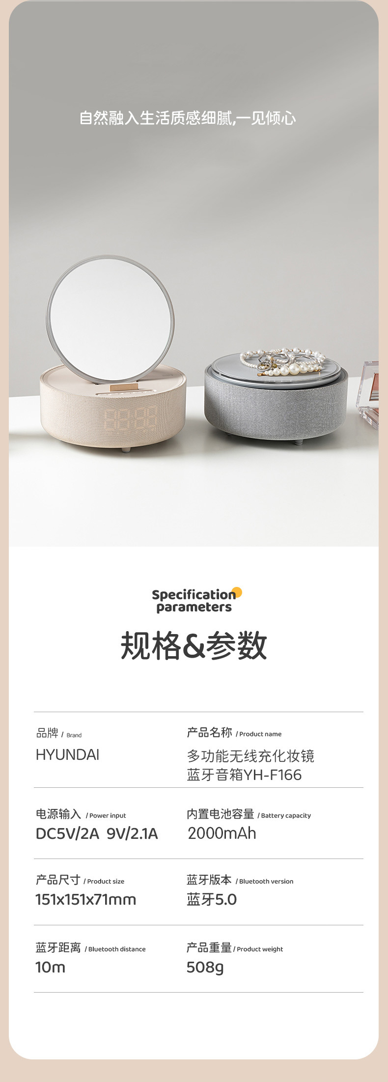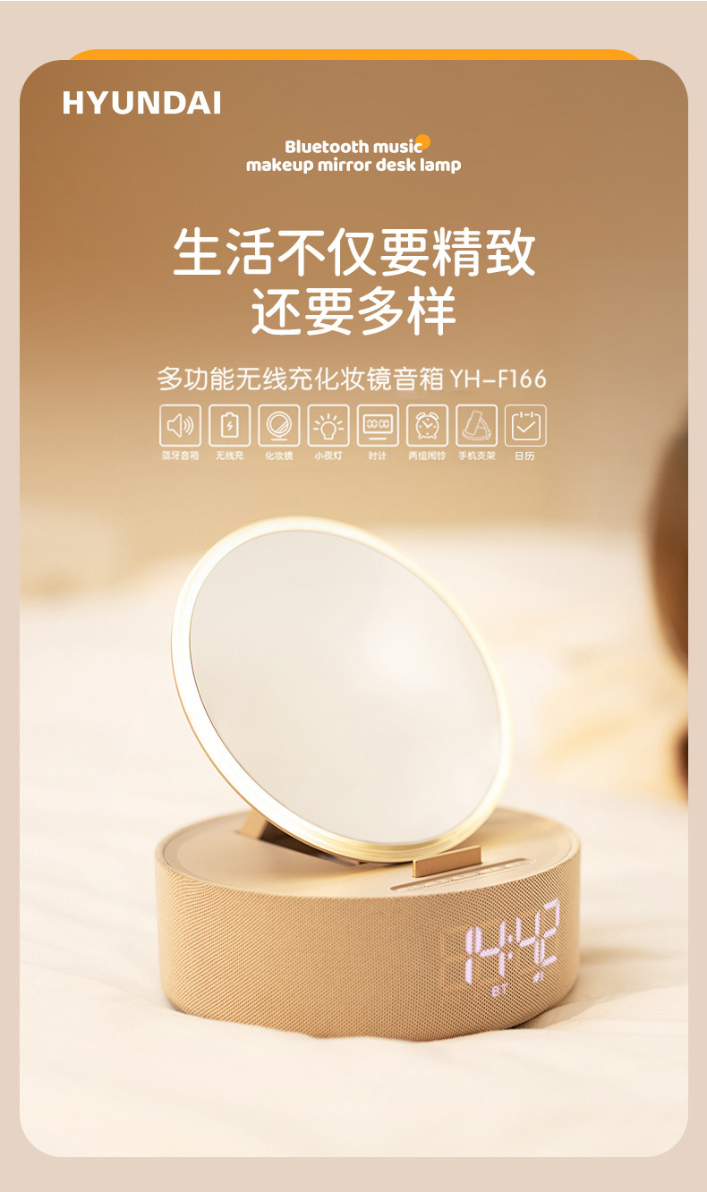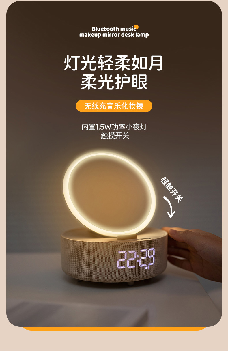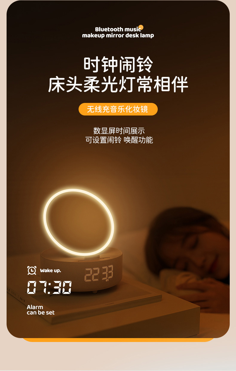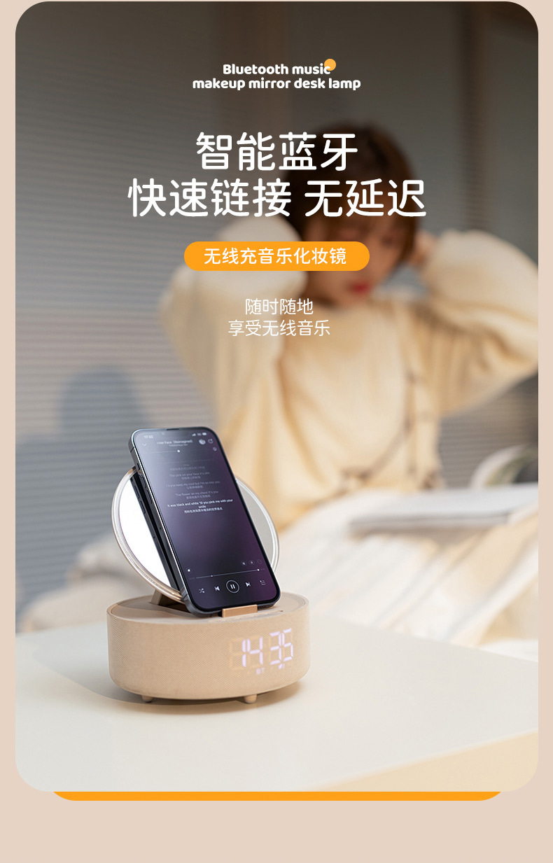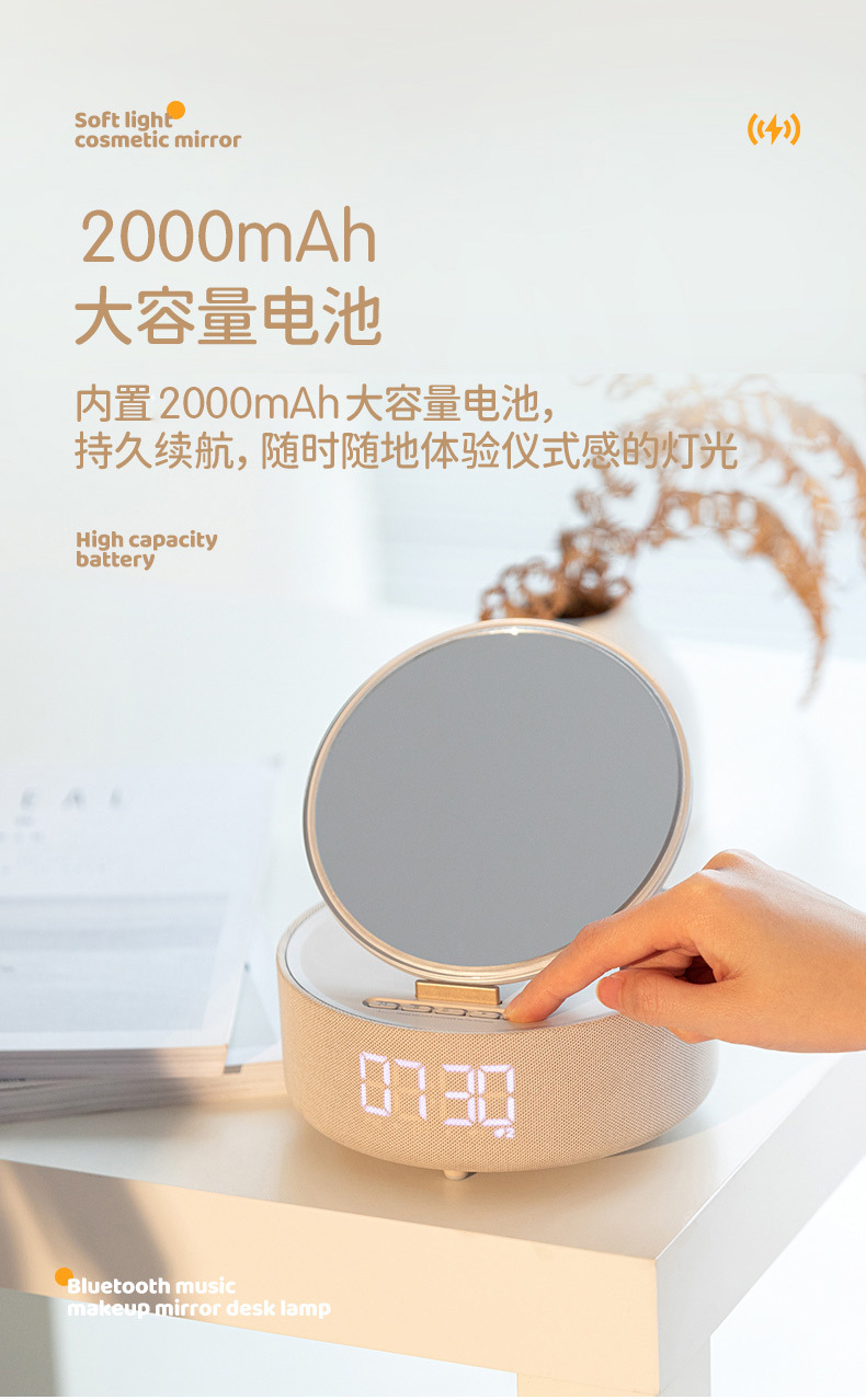 다기능 무선 충전 화장 거울 블루투스 스피커 알람 시계 남편용 아내용 휴대용 데스크탑 블루투스 5.3