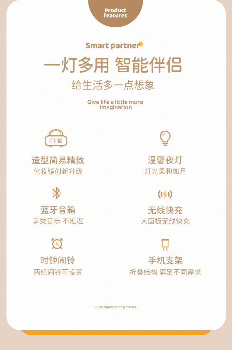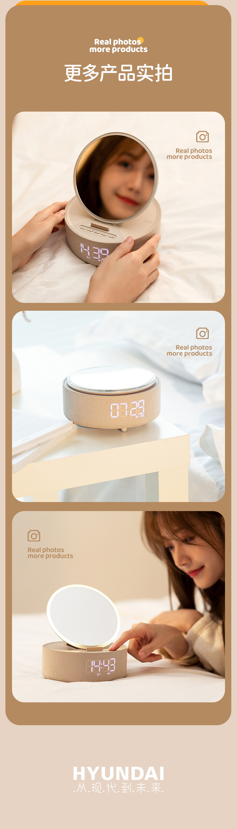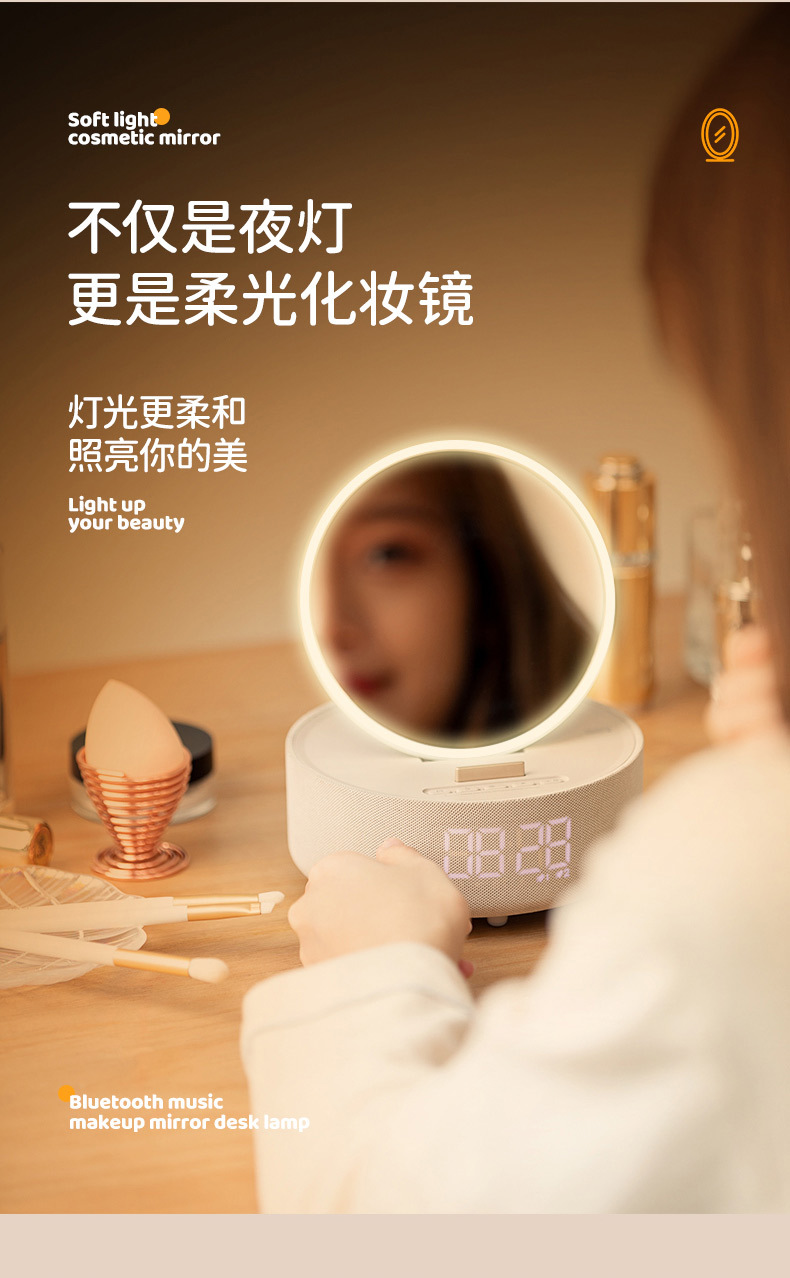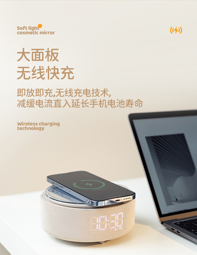 다기능 무선 충전 화장 거울 블루투스 스피커 알람 시계 남편용 아내용 휴대용 데스크탑 블루투스 5.3스토어 가기