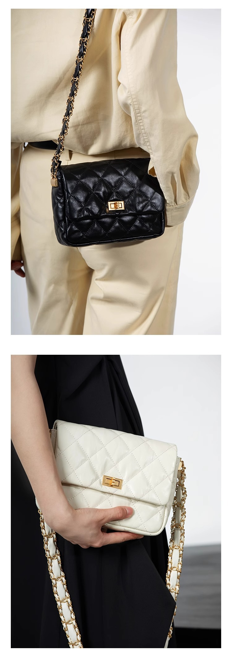 국경 간 핫 크로스 바디 백 여성의 2024 새로운 스타일 샤넬 스타일 마름모꼴 체인 백 고급 캐주얼 정품 가죽 두부 백스토어 가기