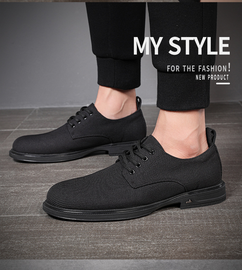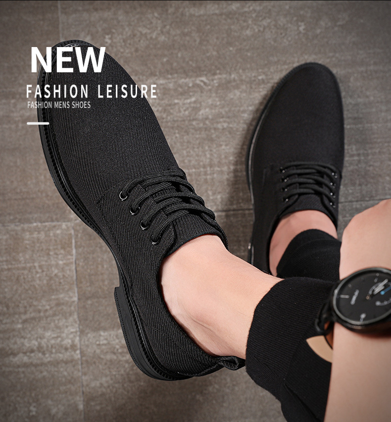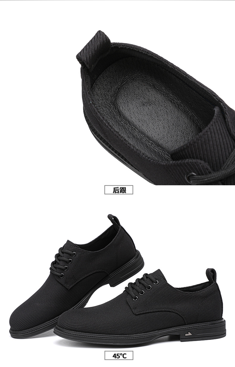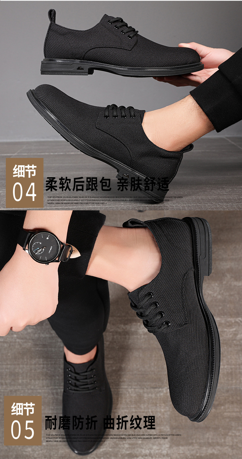 가죽과 천으로 된 남성용 신발 2025 여름 신작 통기성 남성 신발 뾰족한 비즈니스 캐주얼 신발 남성용 올 블랙 정품 천 신발스토어 가기