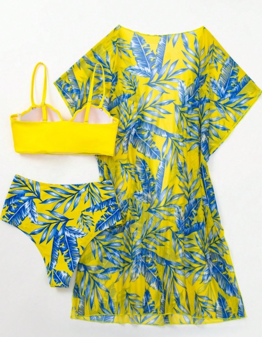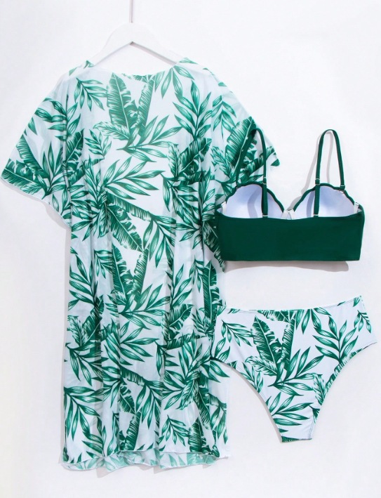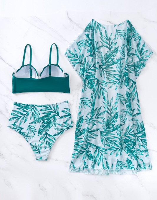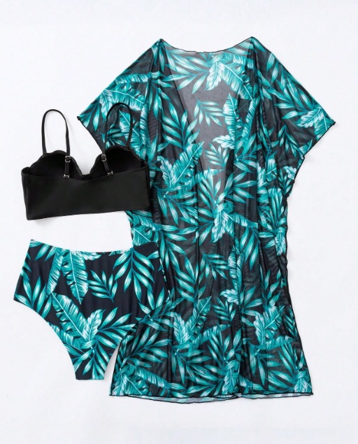 공장 가공 맞춤형 국경 간 새로운 단풍잎 프린트 하이 웨이스트 메쉬 재킷 슬리밍 비키니 대외 무역 수영복스토어 가기