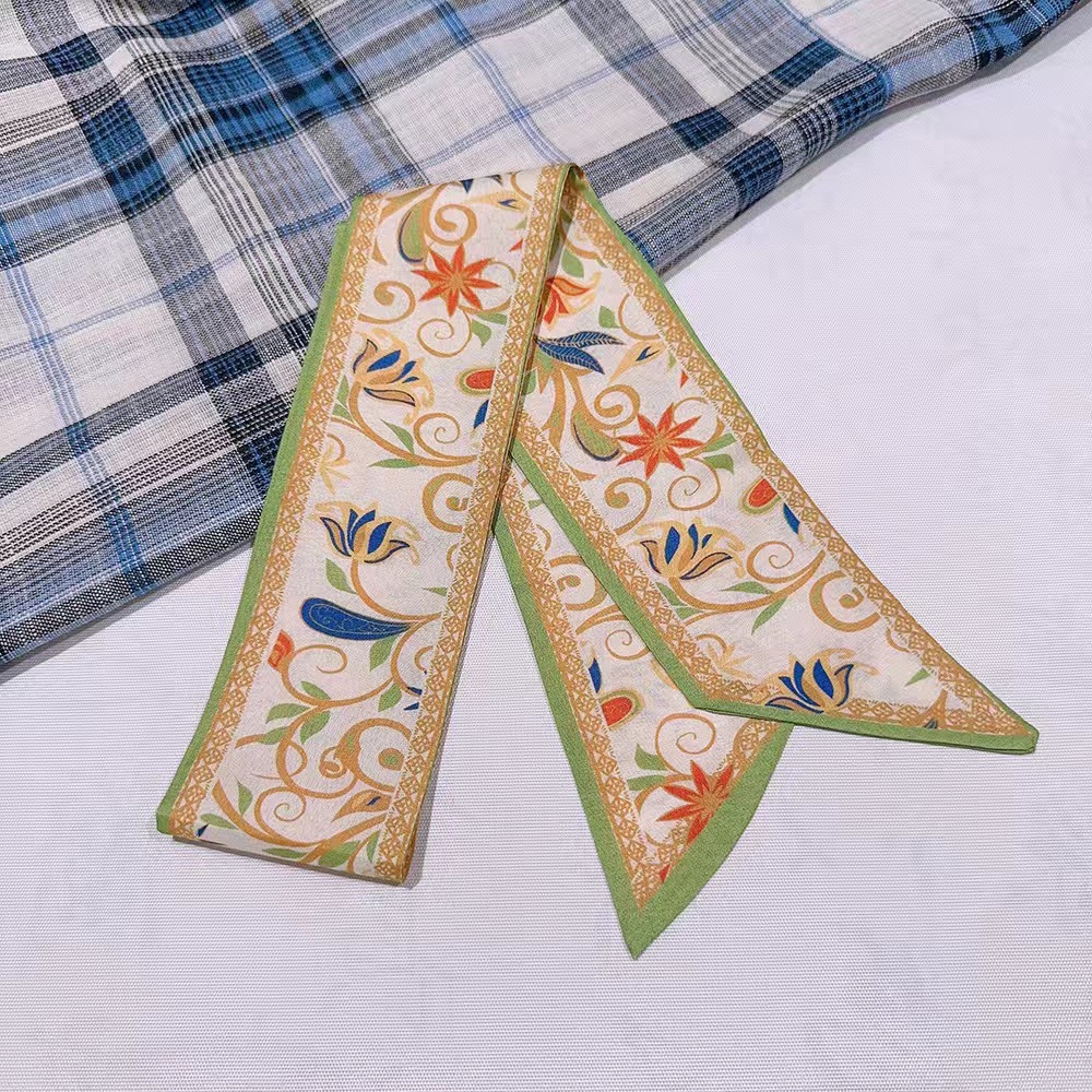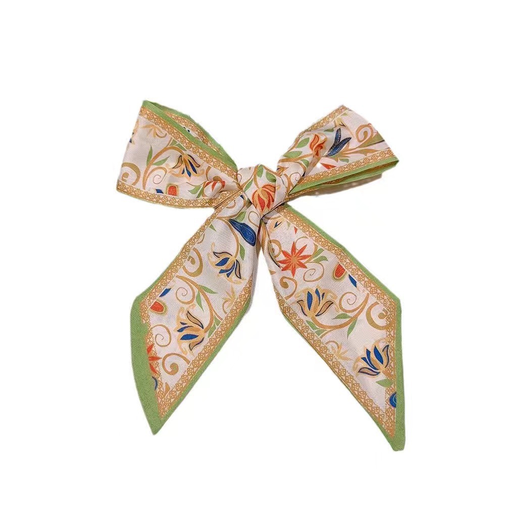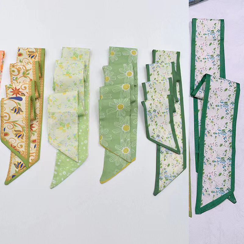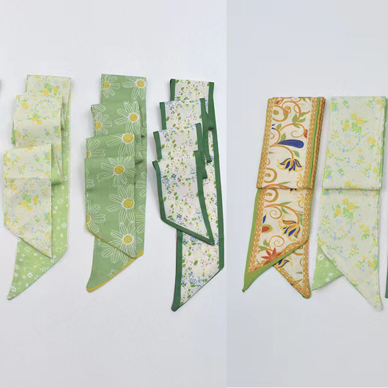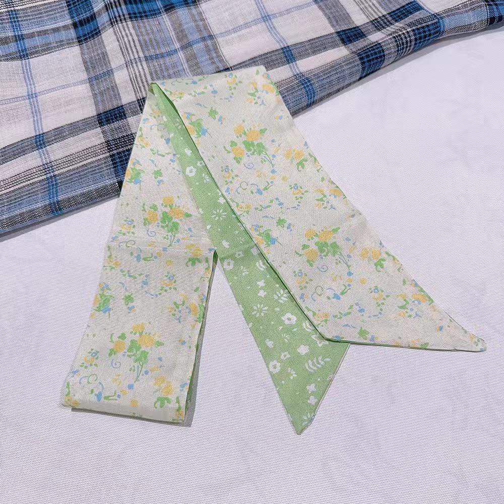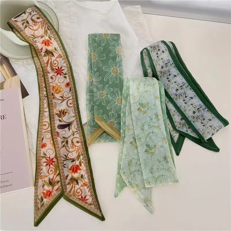 봄과 여름 새로운 꽃 머리 밴드 넥타이 가방 헤어 리본 인쇄 신선한 작은 실크 스카프 한국 헤어 액세서리