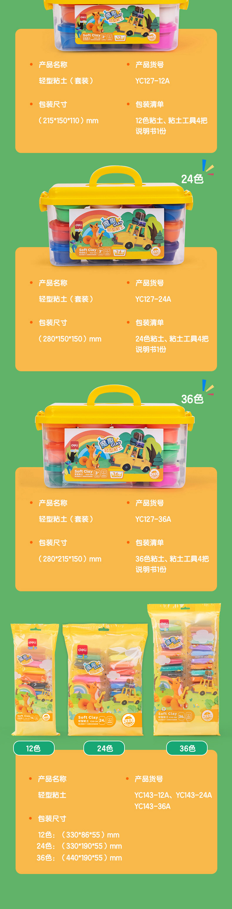 델리 울트라 라이트 클레이 어린이 24 컬러 36 컬러 클레이 플라스틱 클레이 수제 교육 장난감 유치원 초등학생스토어 가기