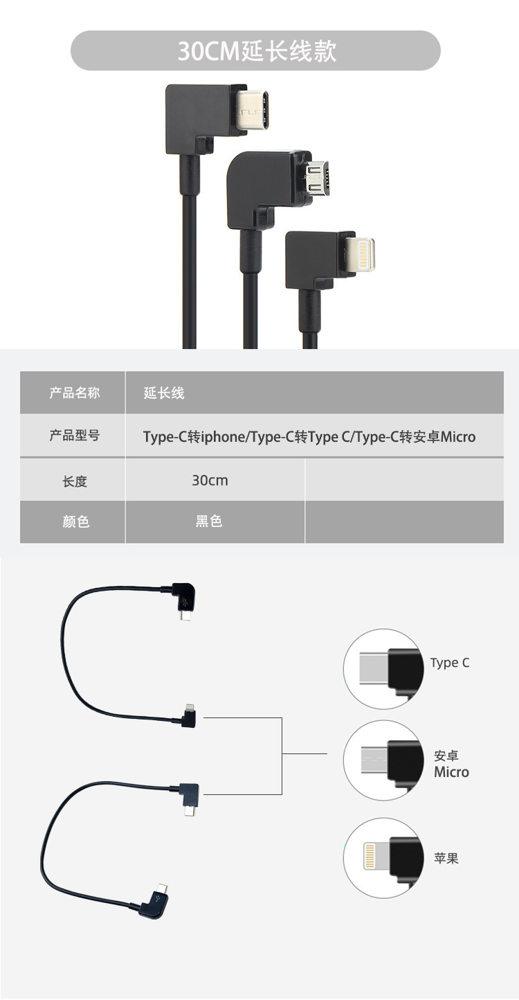 DJI DJI 데이터 케이블 원격 제어 땋은 데이터 케이블은 Mavic mini/SE/PRO/Mavic 2 휴대폰 어댑터 케이블에 적합합니다.