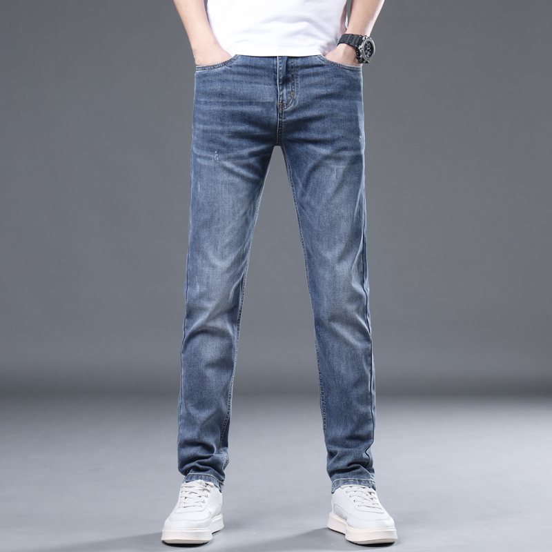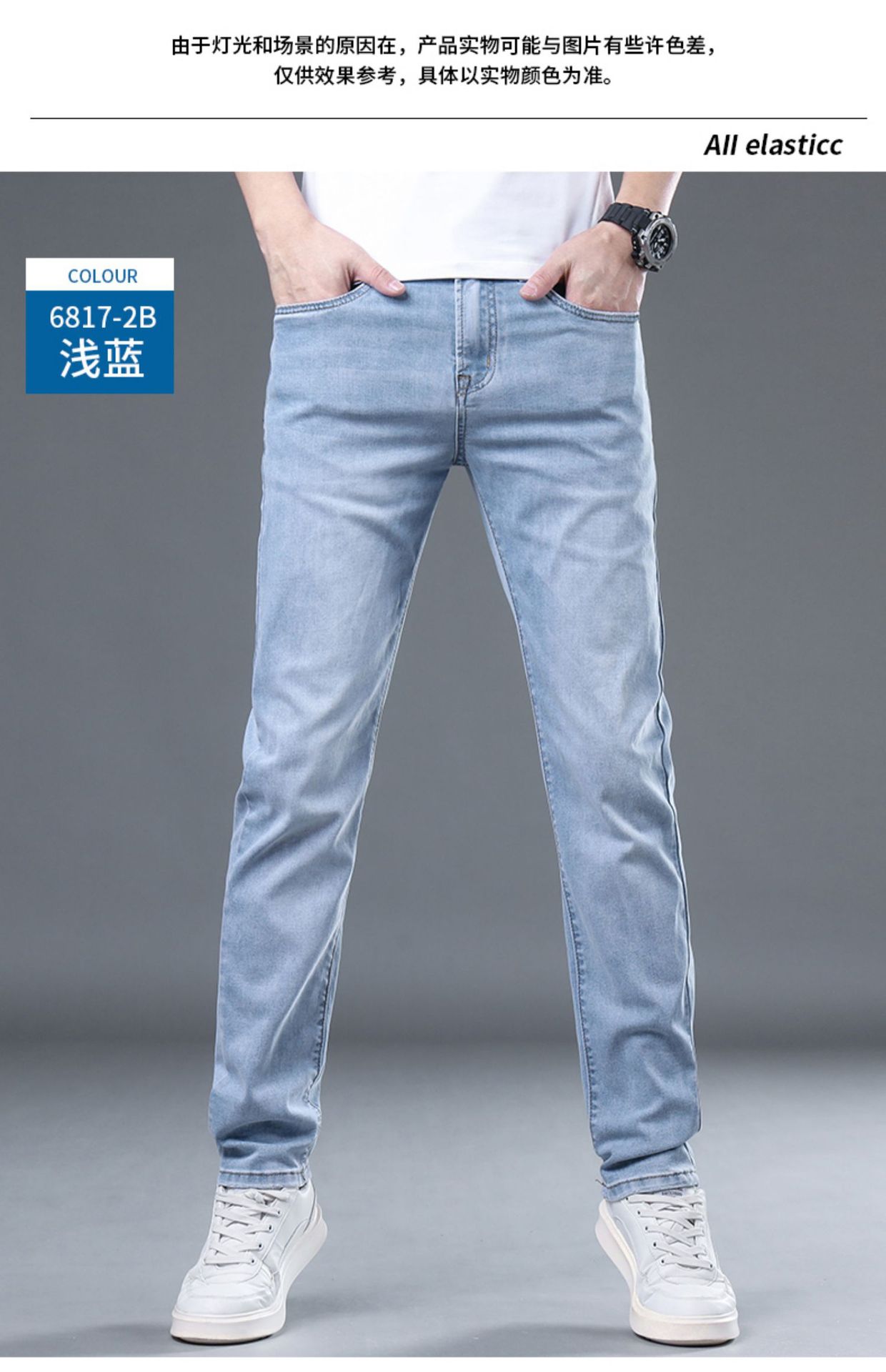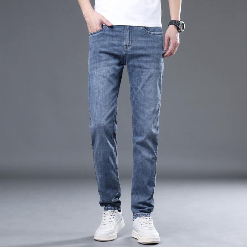 청바지 남자 여름 얇은 탄성 느슨한 스트레이트 바지 남자 2024 새로운 여름 아이스 실크 캐주얼 바지