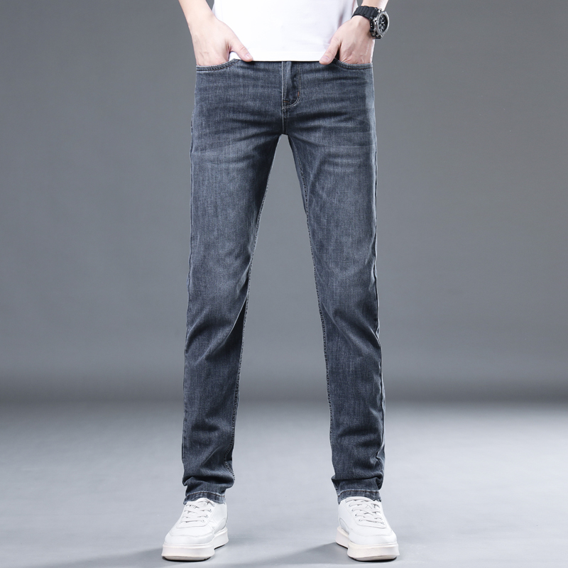 청바지 남자 여름 얇은 탄성 느슨한 스트레이트 바지 남자 2024 새로운 여름 아이스 실크 캐주얼 바지스토어 가기