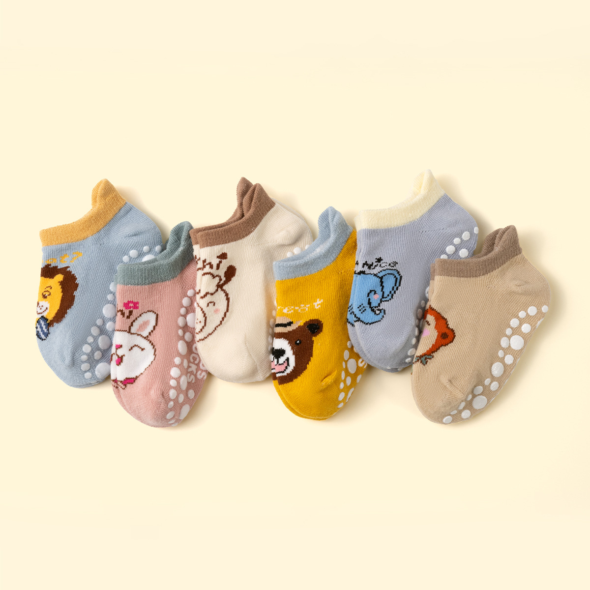어린이 미끄럼 방지 양말 6 쌍, 동물 요소 보트 양말, 한국 스타일 봄, 가을, 겨울 아기 만화 유행 보트 양말 도매스토어 가기