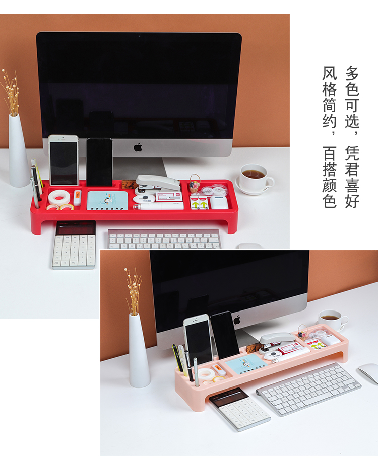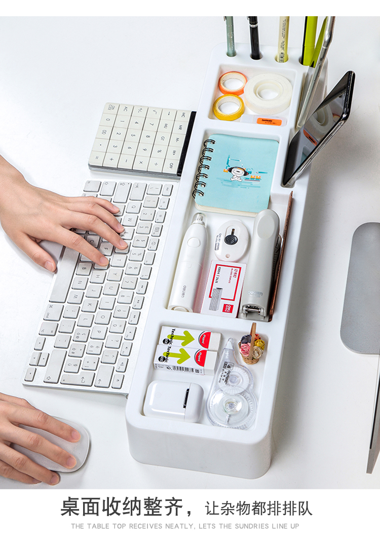 BTV4 사무실 데스크톱 스토리지 박스 간단한 키보드 스토리지 랙 플라스틱 잡화 마감 상자 컴퓨터 책상 상승 세트