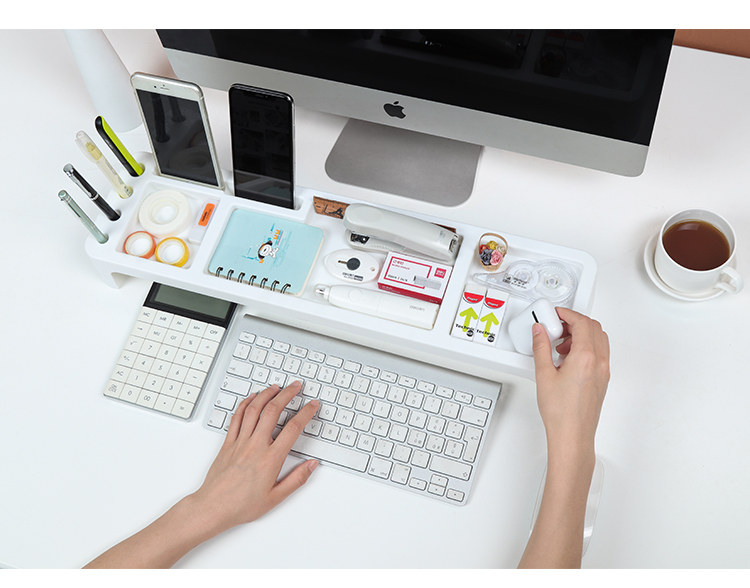 BTV4 사무실 데스크톱 스토리지 박스 간단한 키보드 스토리지 랙 플라스틱 잡화 마감 상자 컴퓨터 책상 상승 세트스토어 가기