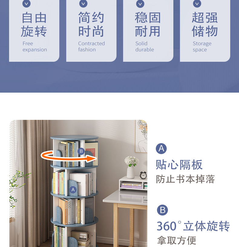 회전 책장 바닥 랙 어린이 그림책 랙 간단한 현대 책장 학생 책장 보관 선반