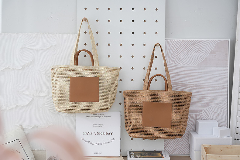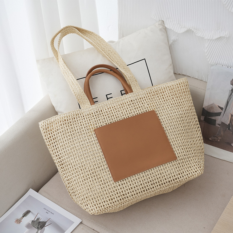 여름 대용량 밀짚 가방 모든 경기 통근 어깨 핸드백 휴일 해변 가방 빈 토트 백