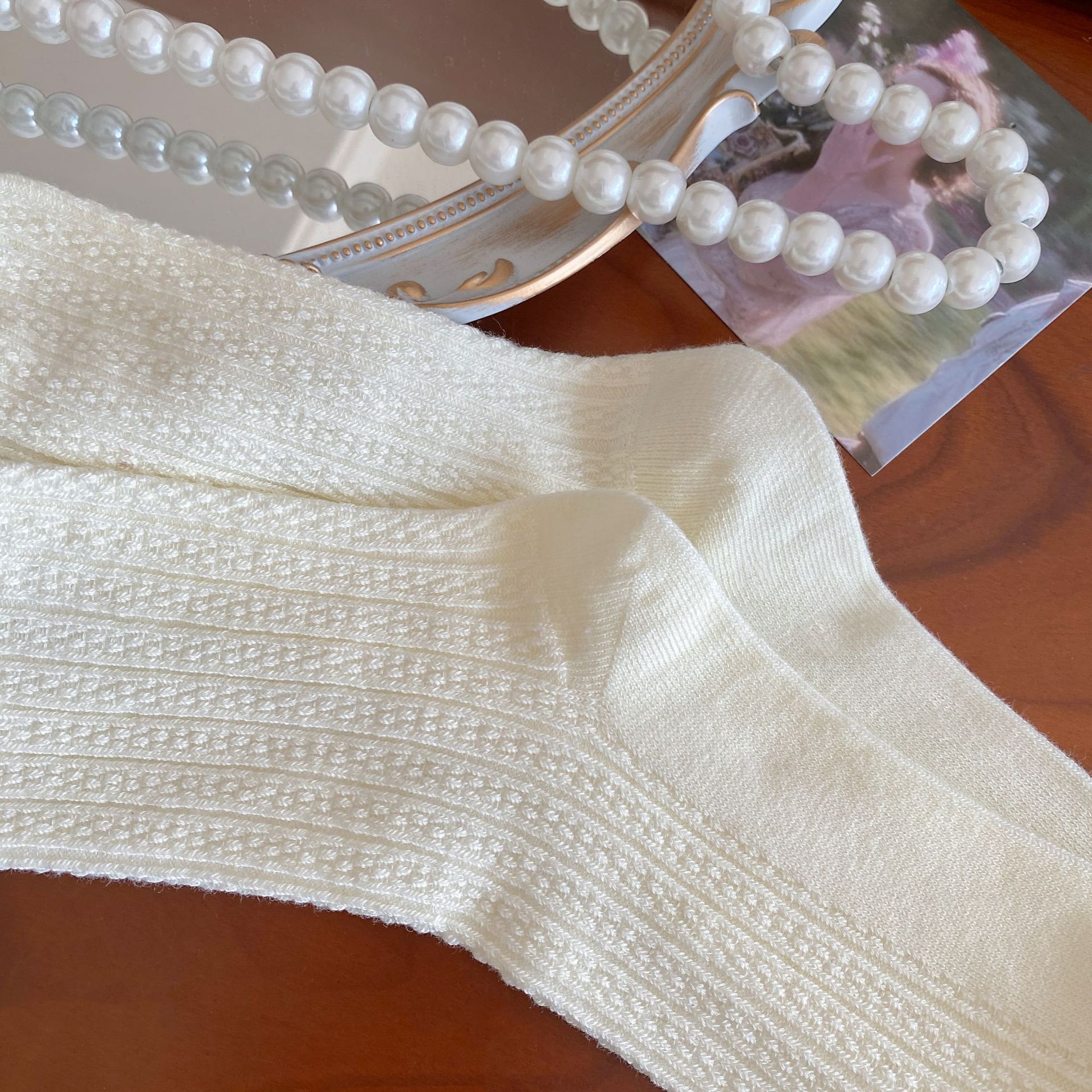 화이트 보우 양말 여성 봄과 여름 발레 스타일 JK 코튼 양말 다이아몬드 이어 사이드 로리타 스택 양말