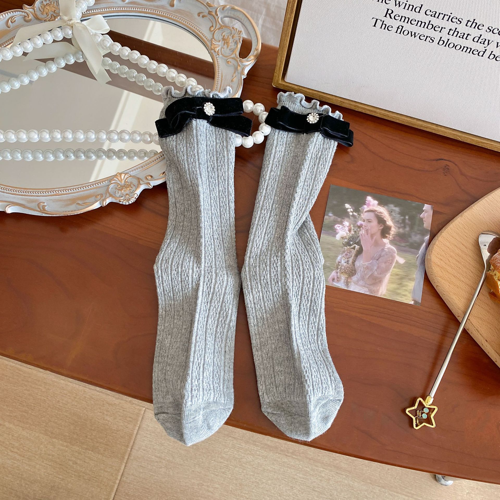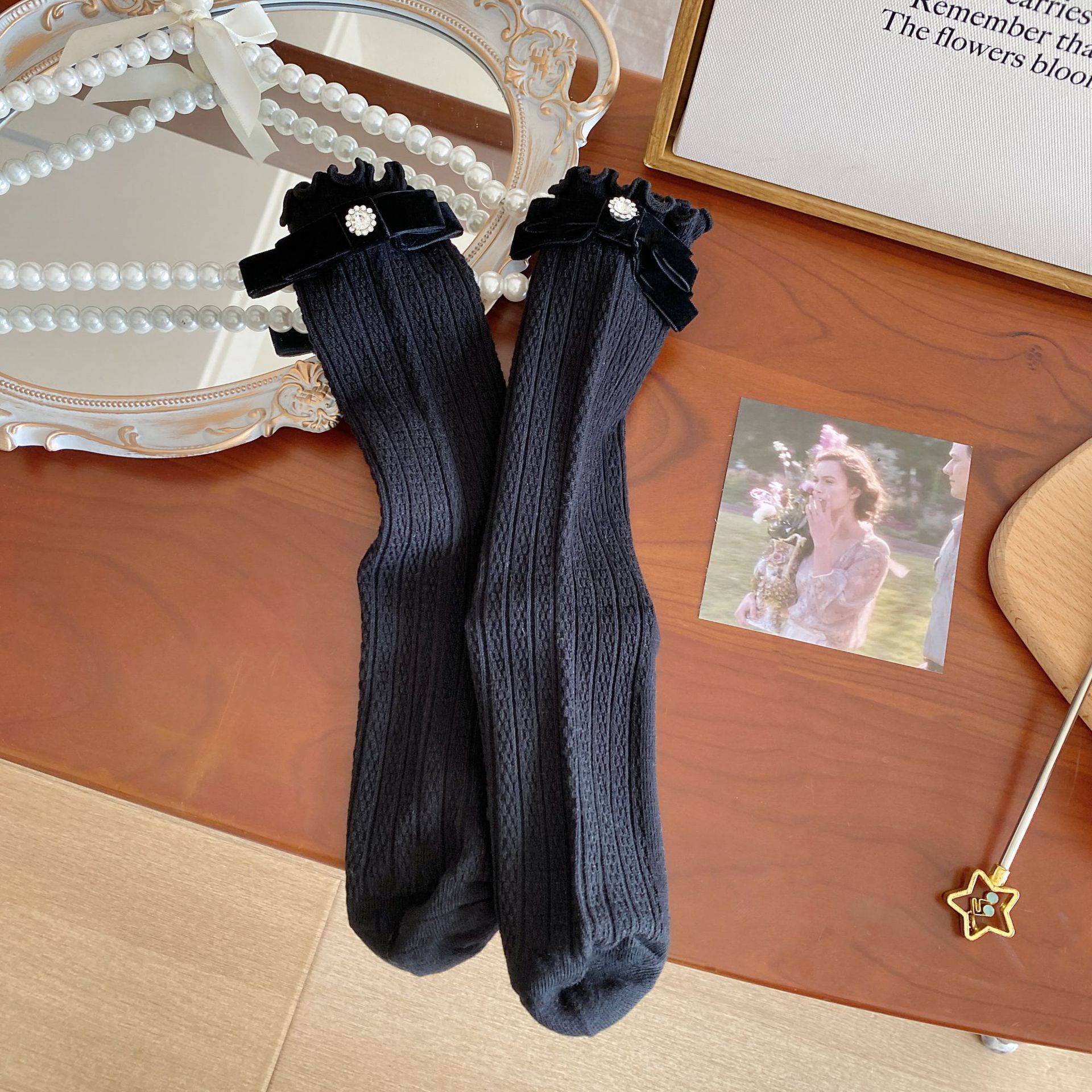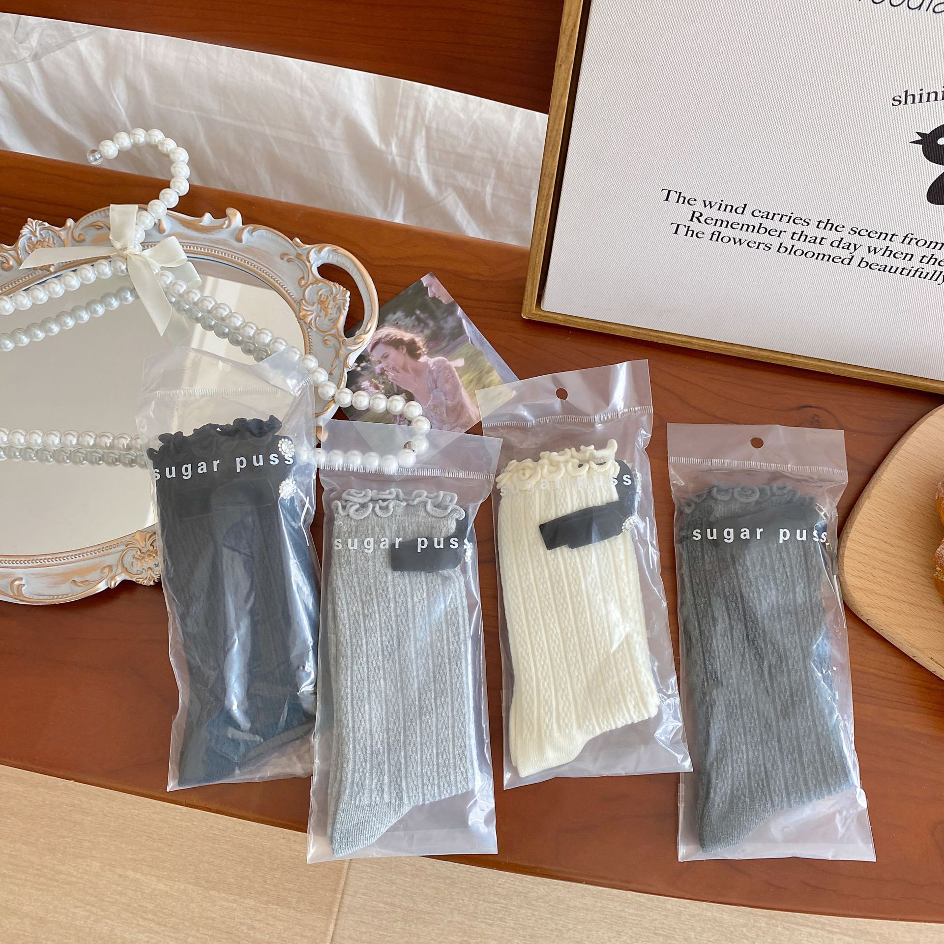 화이트 보우 양말 여성 봄과 여름 발레 스타일 JK 코튼 양말 다이아몬드 이어 사이드 로리타 스택 양말스토어 가기