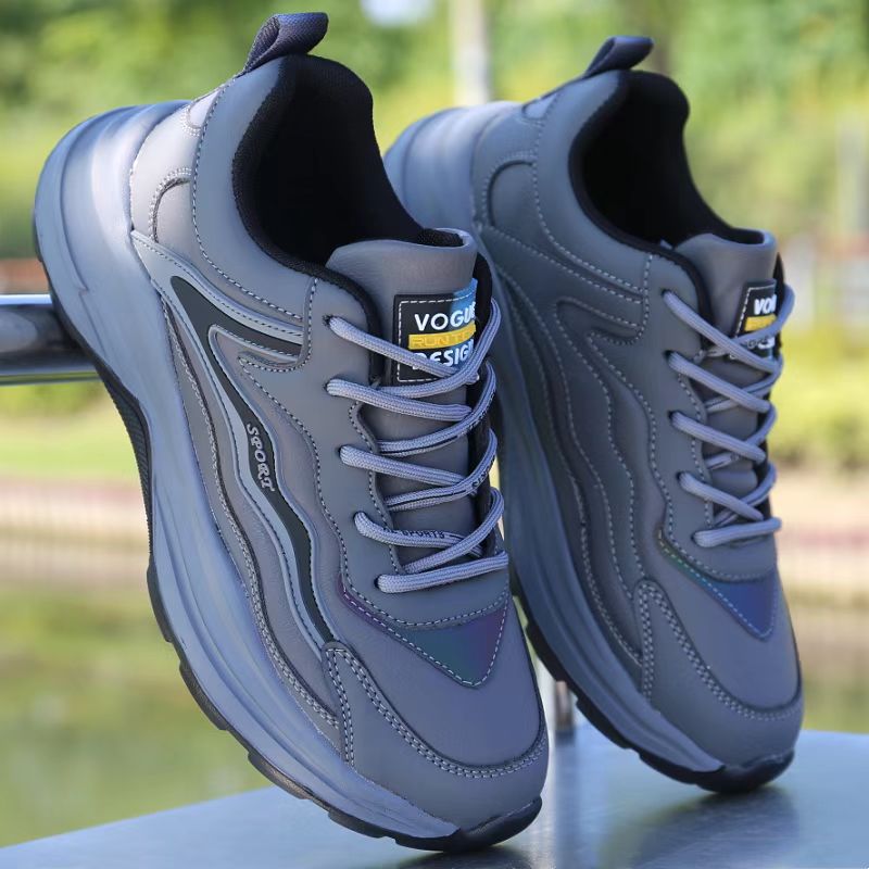 아빠의 신발 남성용 미끄럼 방지 러닝 슈즈 가죽 탑 방수 운동화 트렌디 한 올 매치 남성용 캐주얼 여행 신발스토어 가기
