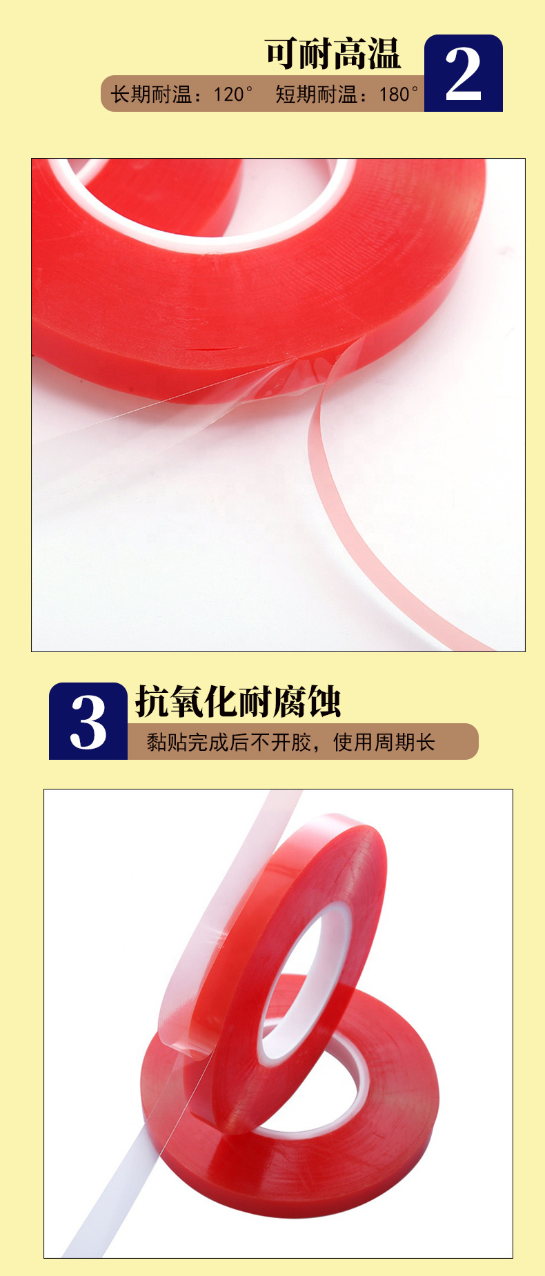 공장 직접 판매 0.2mm 빨간색 투명 아크릴 폴리 에스테르 고온 저항 비 마킹 방수 양면 접착 PET 테이프스토어 가기