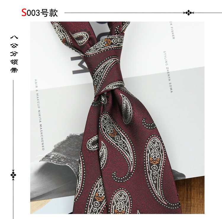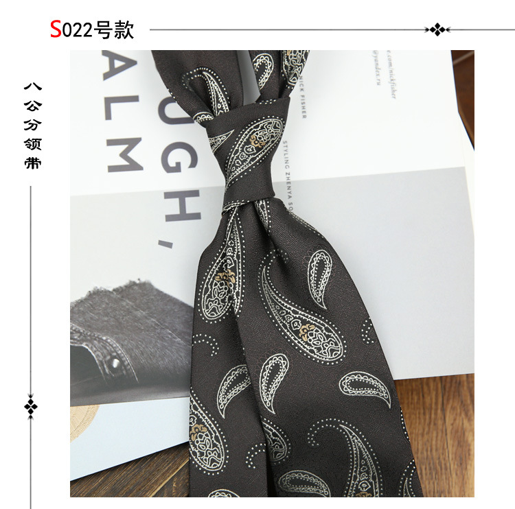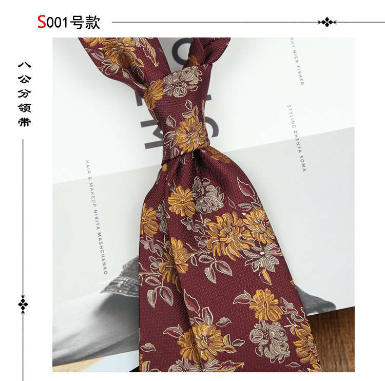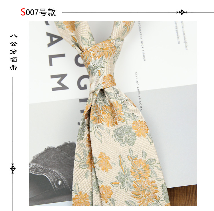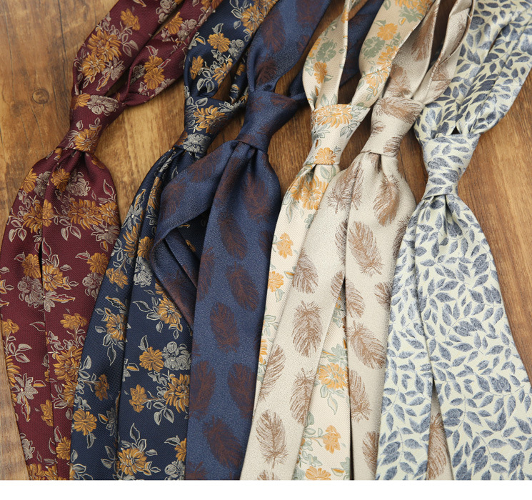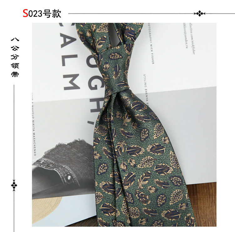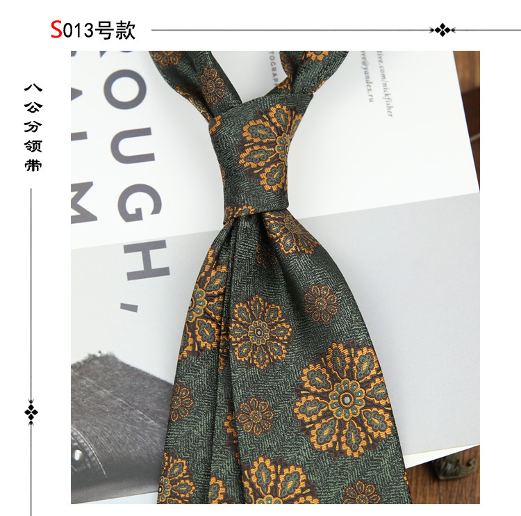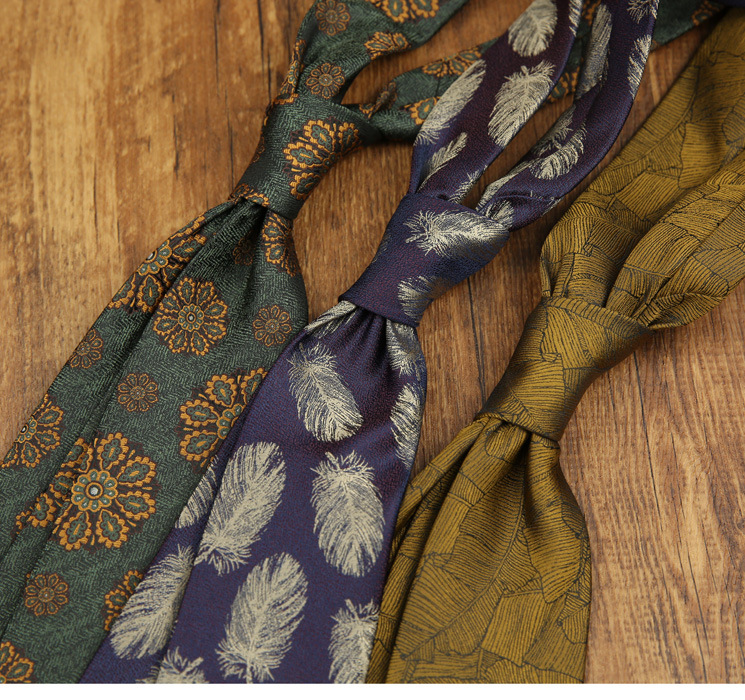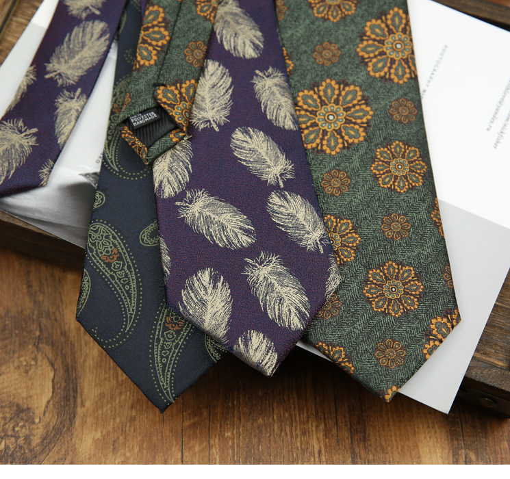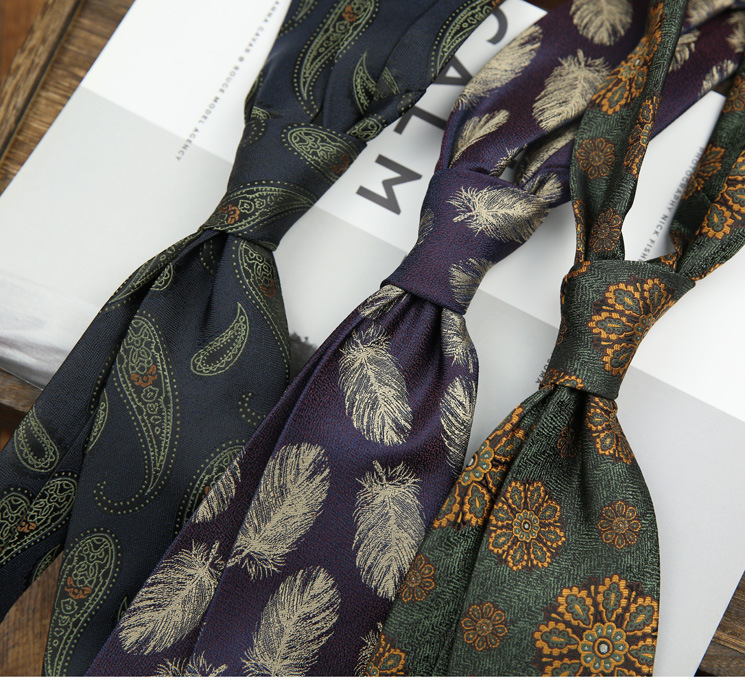 빈티지 패턴 넥타이 남성 비즈니스 원피스 8cm 넓은 한국어 캐주얼 영어 스타일 핸드 스트라이프 깃털