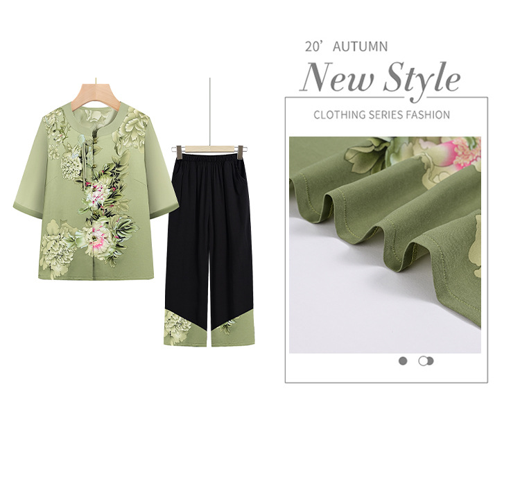 중년 및 노인 여름 옷 세트 할머니 쉬폰 셔츠 어머니 여름 투피스 7 소매 늙은 여자 옷