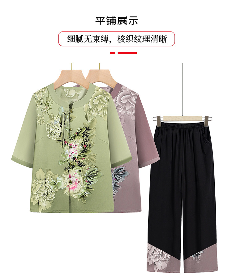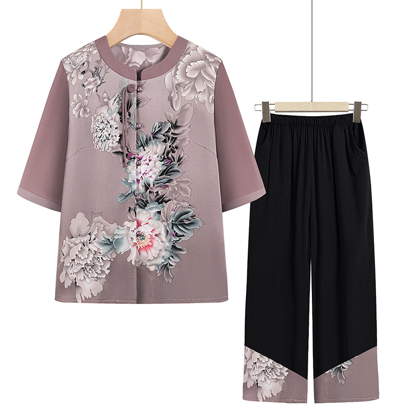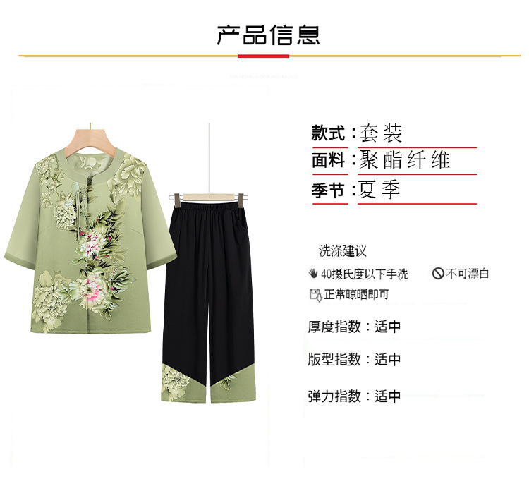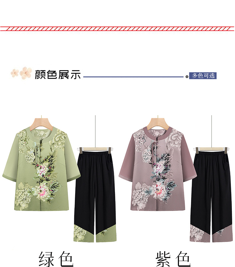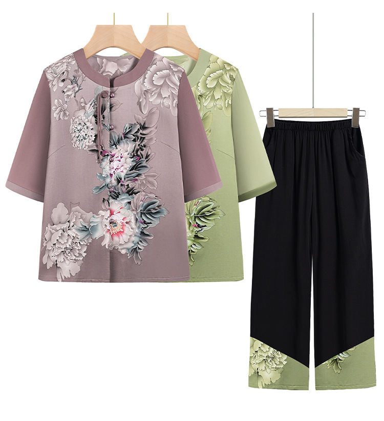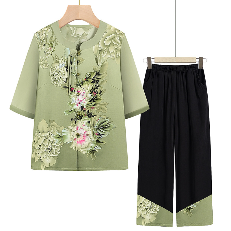 중년 및 노인 여름 옷 세트 할머니 쉬폰 셔츠 어머니 여름 투피스 7 소매 늙은 여자 옷스토어 가기