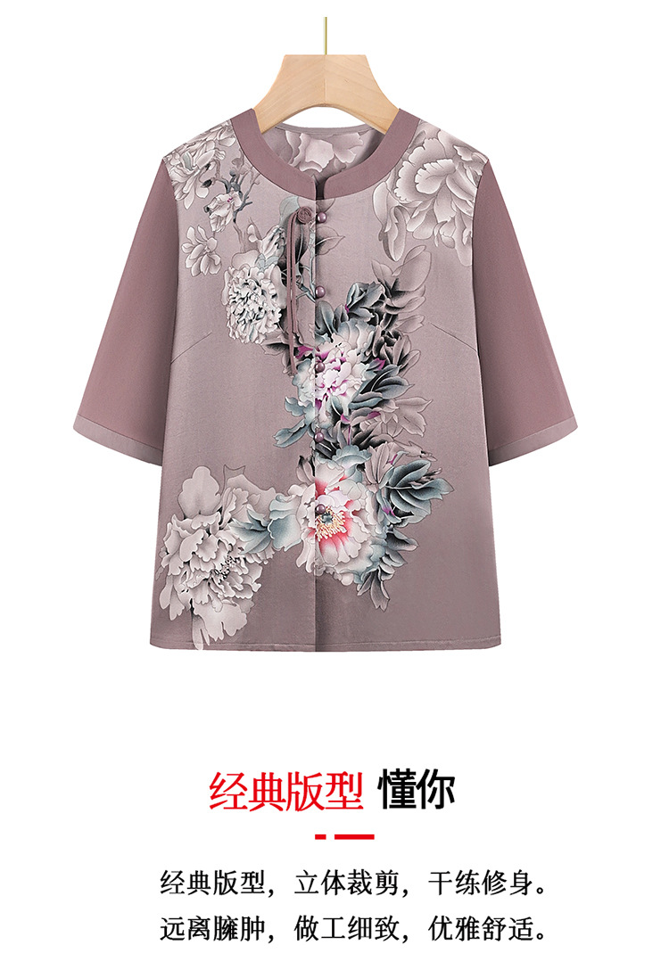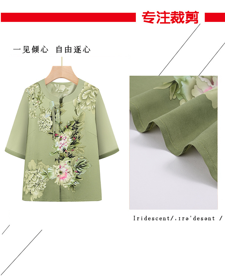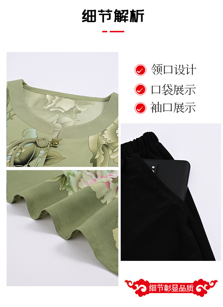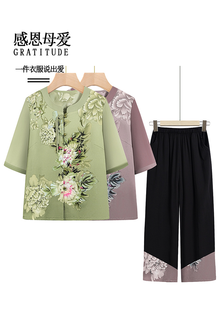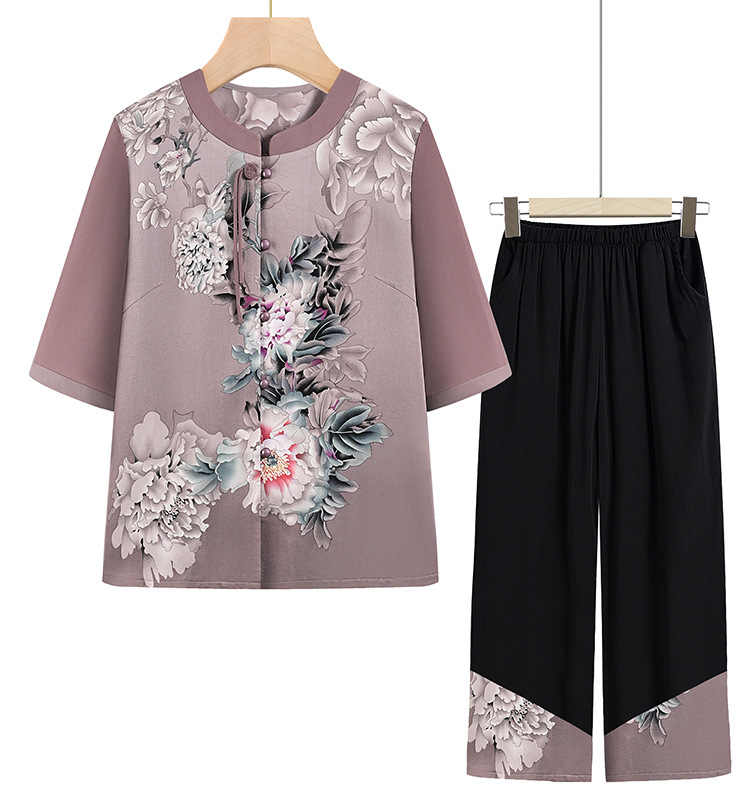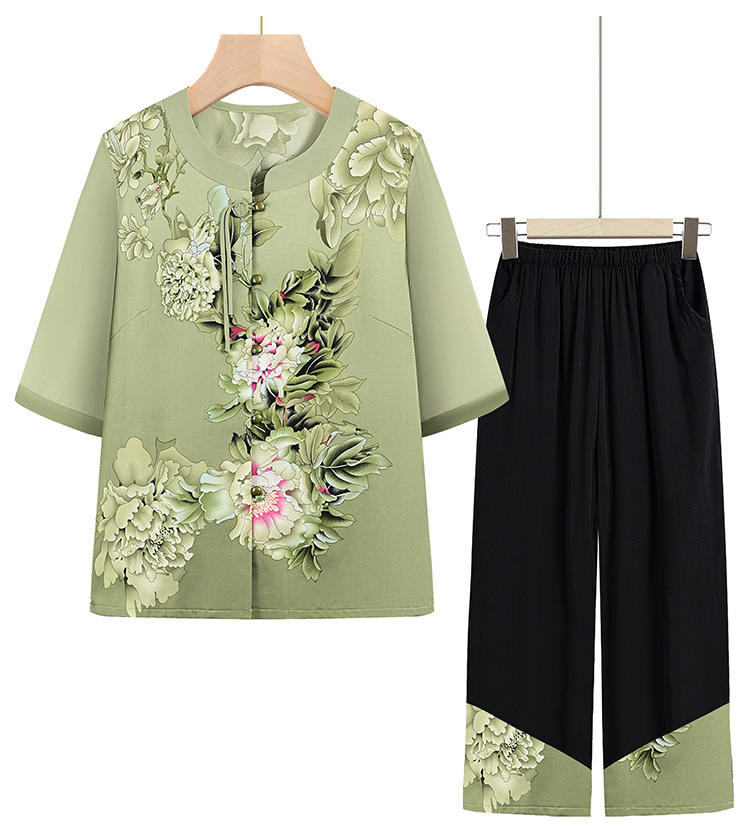 중년 및 노인 여름 옷 세트 할머니 쉬폰 셔츠 어머니 여름 투피스 7 소매 늙은 여자 옷스토어 가기