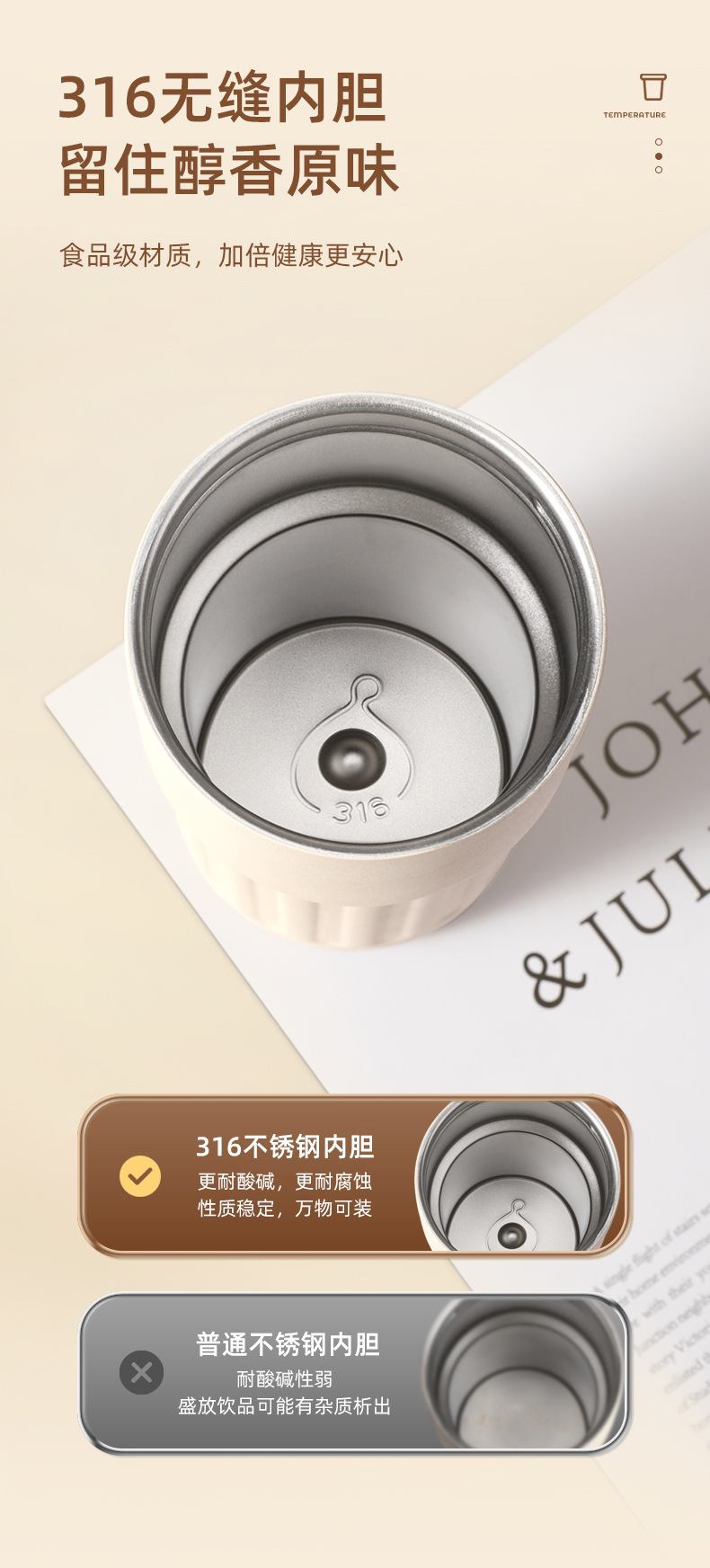 인터넷 연예인 인기 스마트 커피 컵, 고급스러운 316 스테인레스 스틸 보온병 컵, 가벼운 럭셔리 여성용 휴대용 로프 컵스토어 가기
