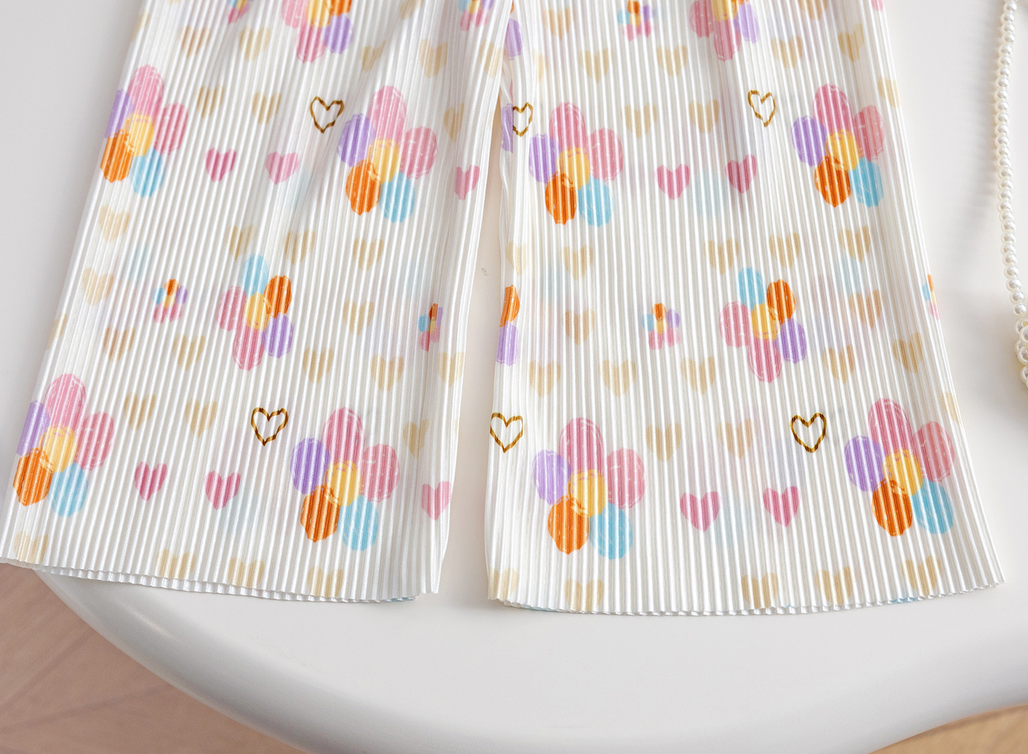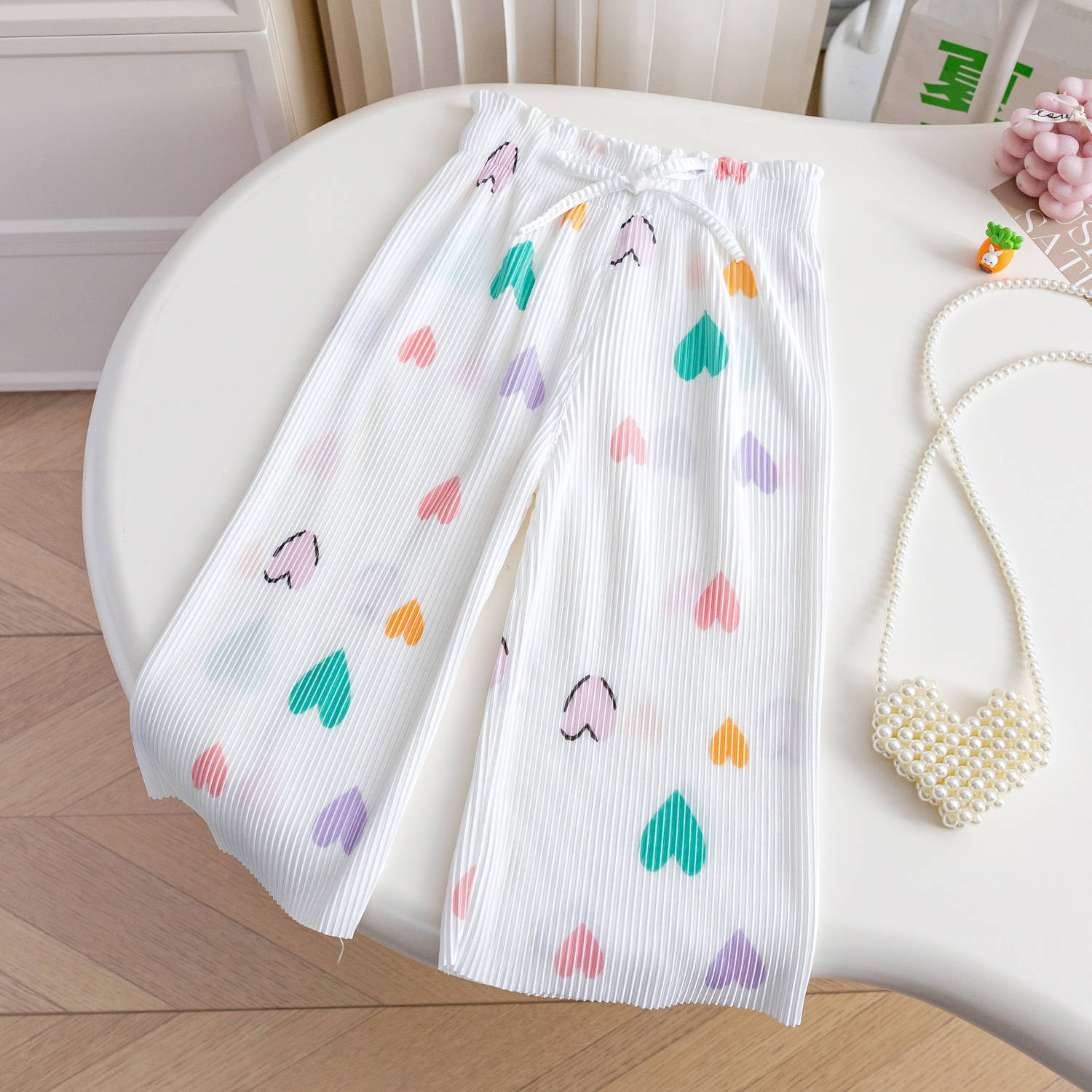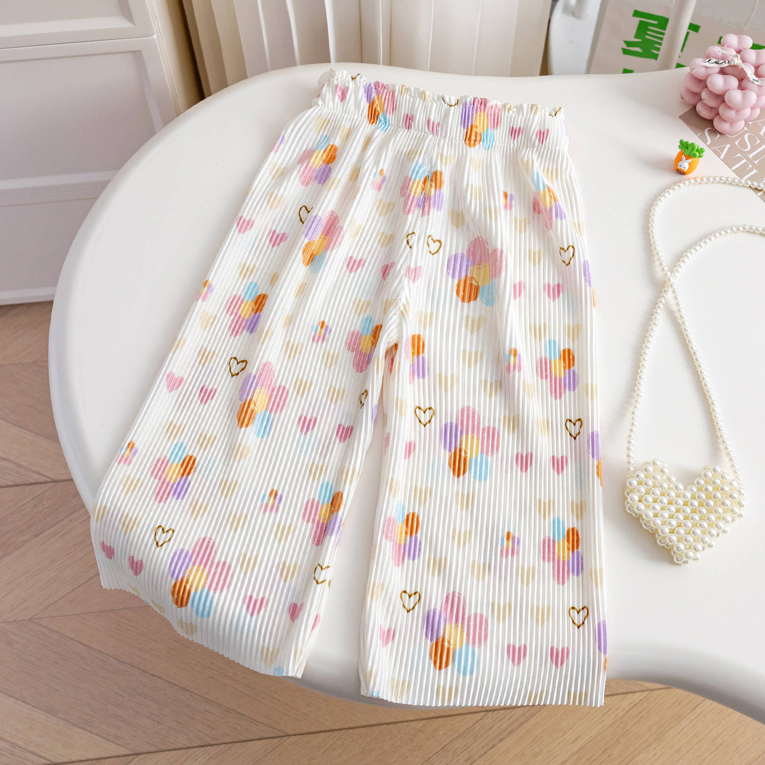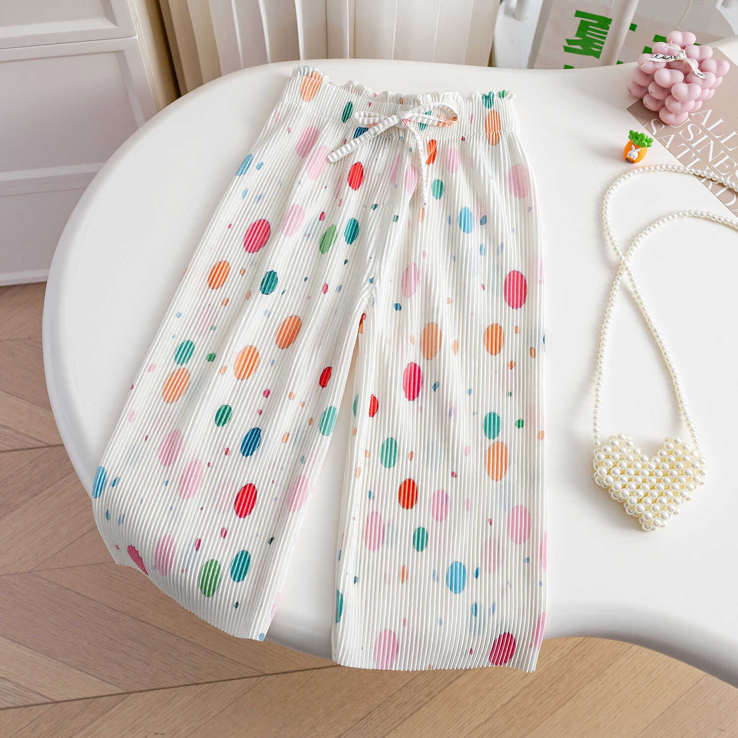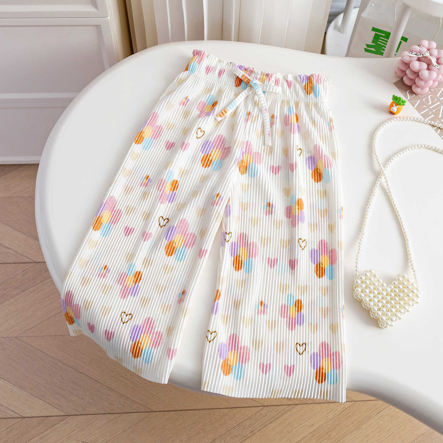 소녀의 넓은 다리 바지 여름 얇은 2024 새로운 어린이 캐주얼 아이스 실크 바지 어린이 아기의 여름 통기성 바지스토어 가기