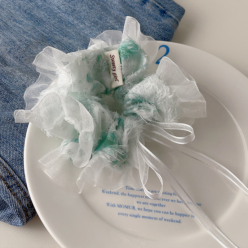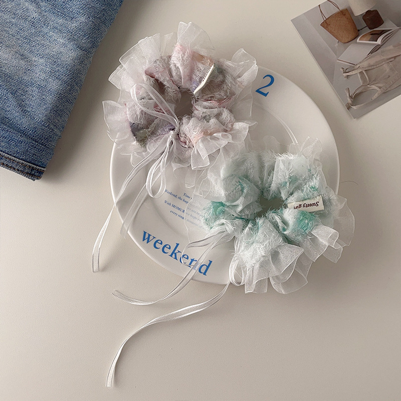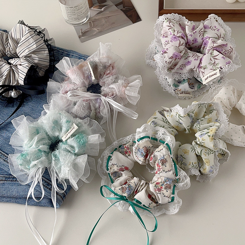새로운 한국어 버전 여름 레이스 머리끈 나비 매듭 패브릭 머리끈 신선하고 달콤한 꽃무늬 여성용 헤어 액세서리