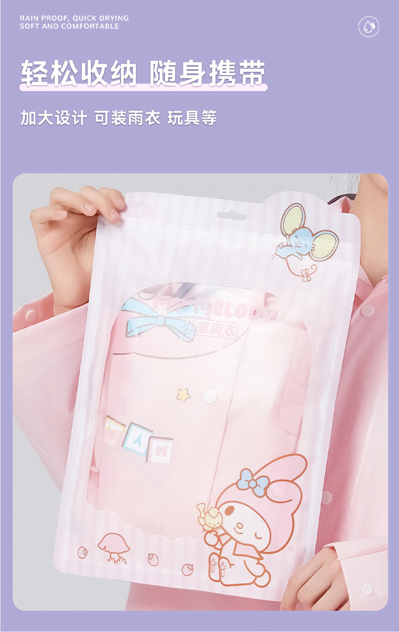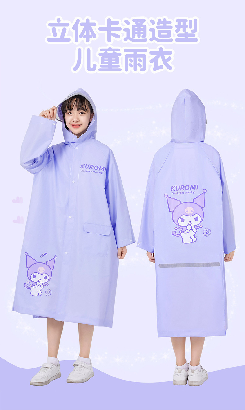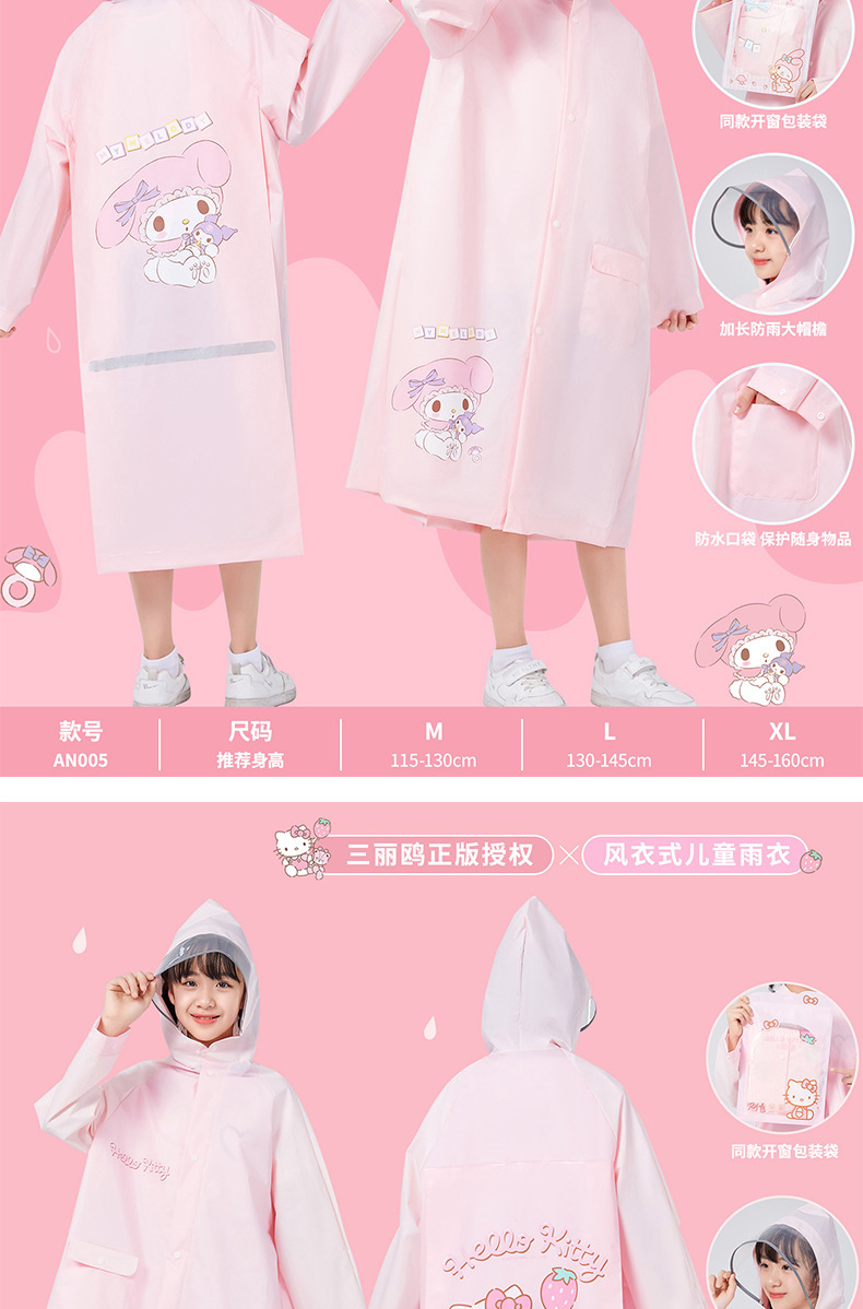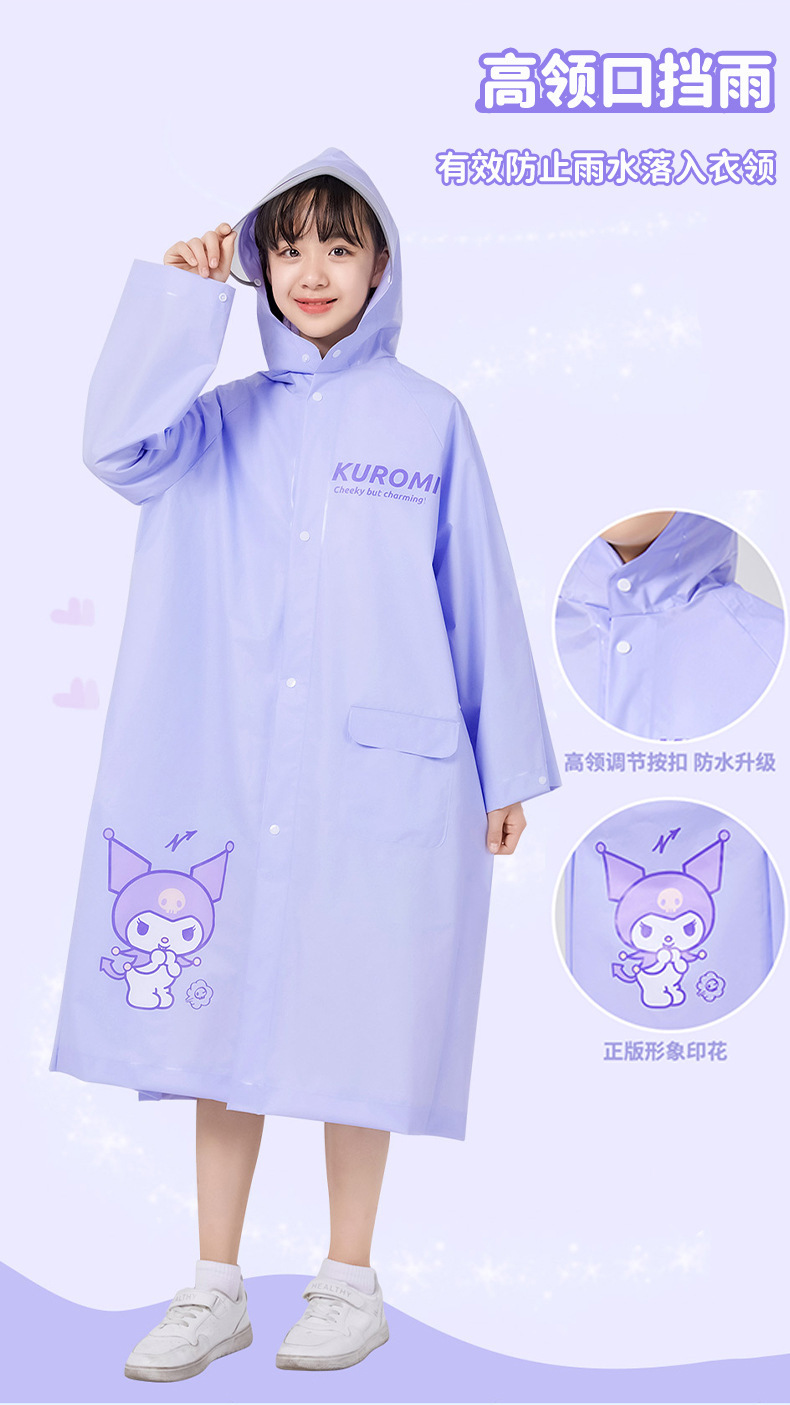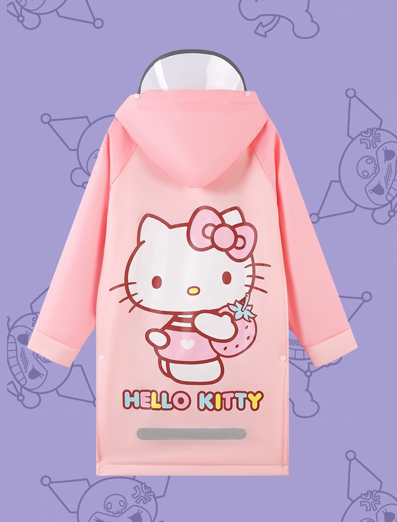 산리오 어린이 비옷 여행 휴대용 야외 학생 비오는 날 전신 방수 코트 빅 햇 브림 원피스 판초
