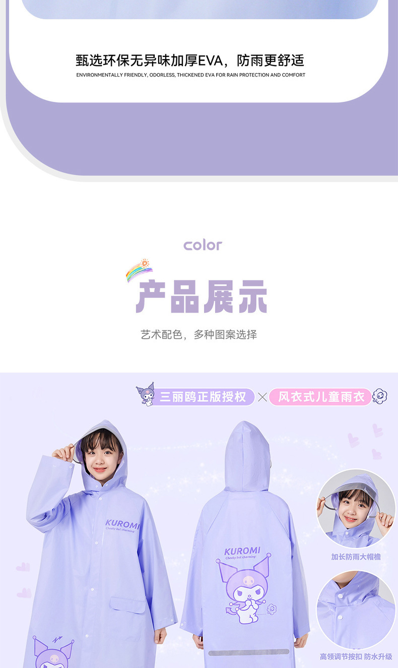 산리오 어린이 비옷 여행 휴대용 야외 학생 비오는 날 전신 방수 코트 빅 햇 브림 원피스 판초스토어 가기