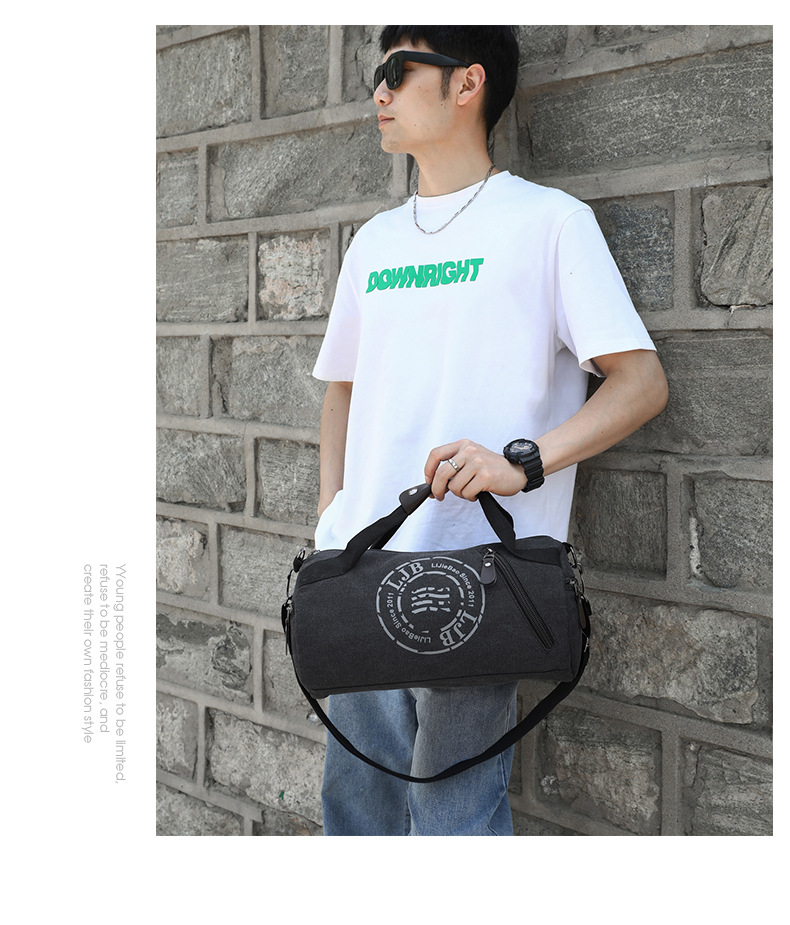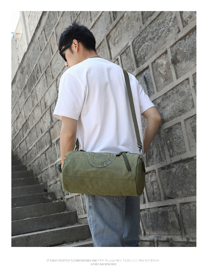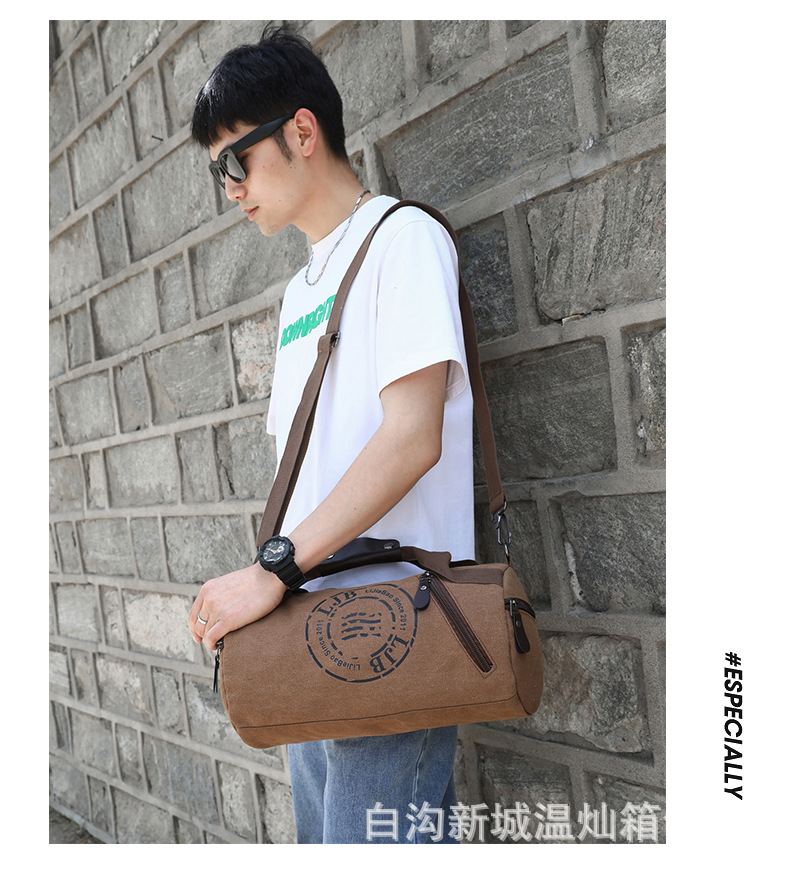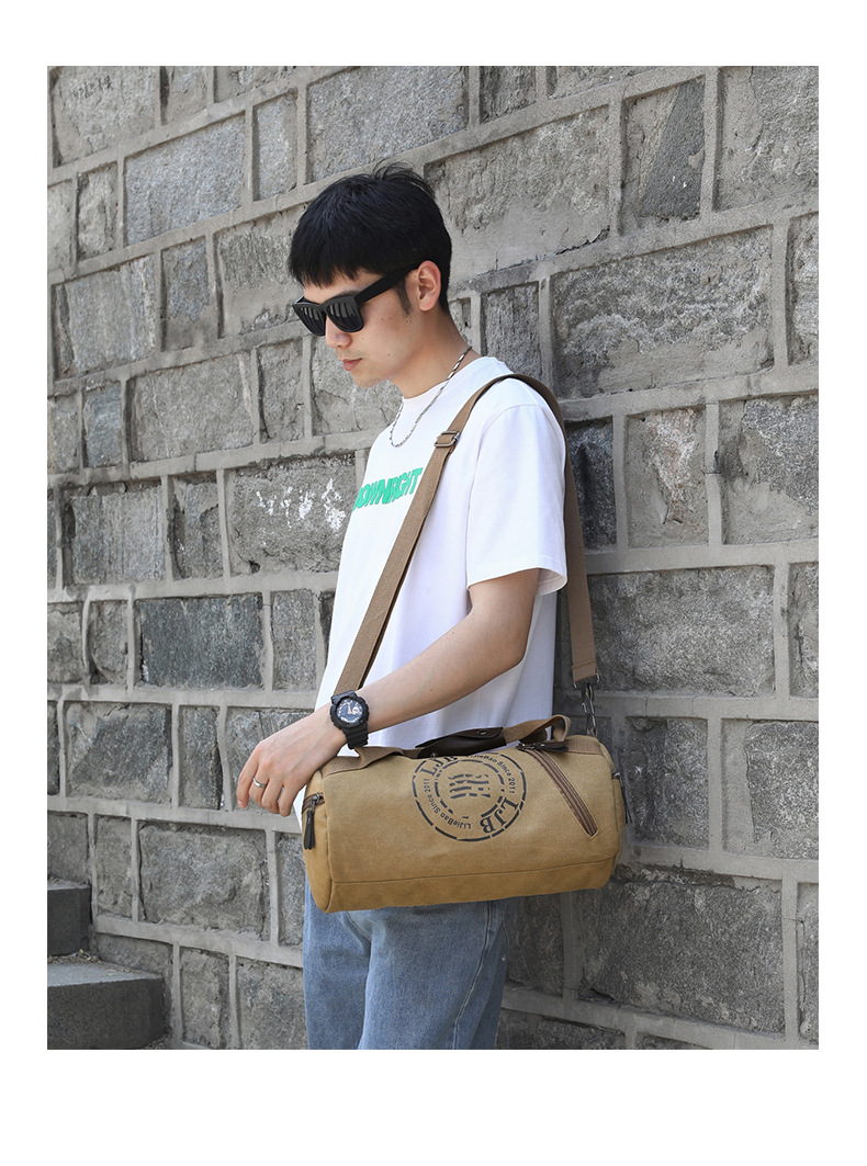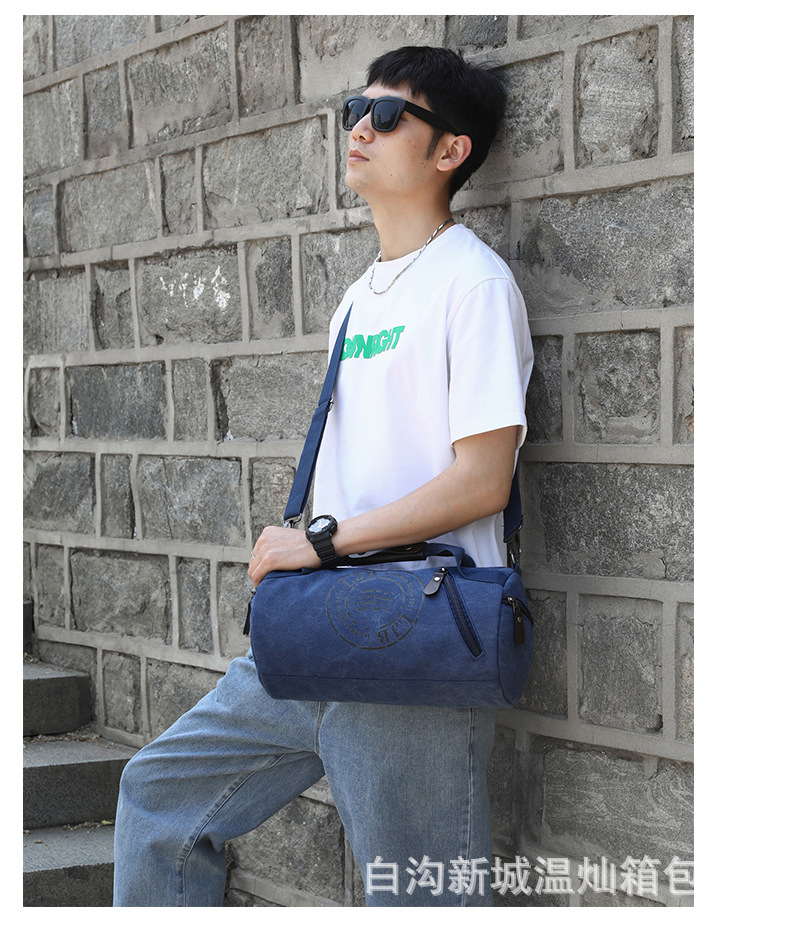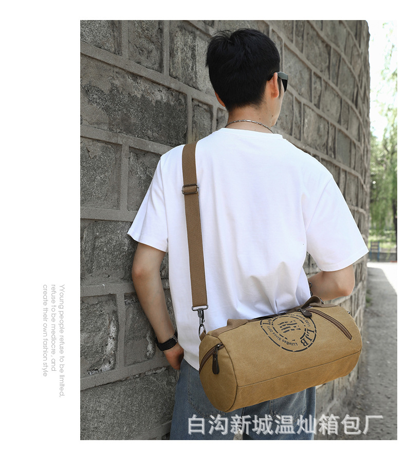 인쇄 가능한 로고 유니섹스 휴대용 단일 어깨 캔버스 원통형 캐주얼 여행 피트니스 의류 가방 크로스 바디 백