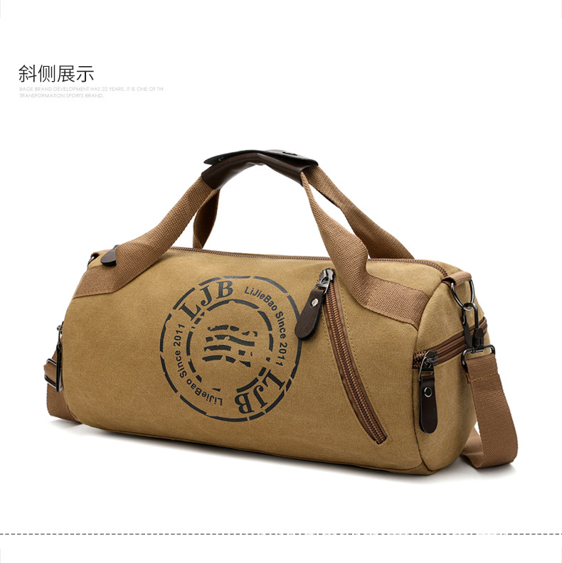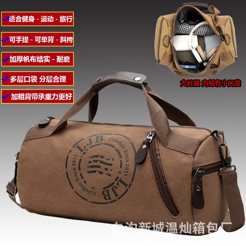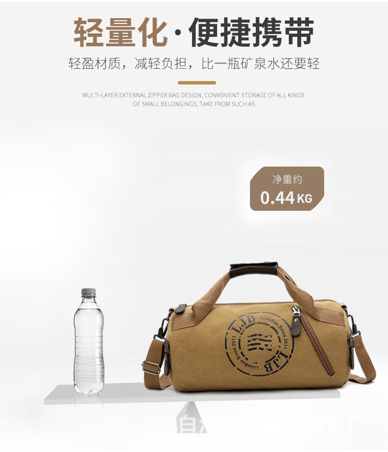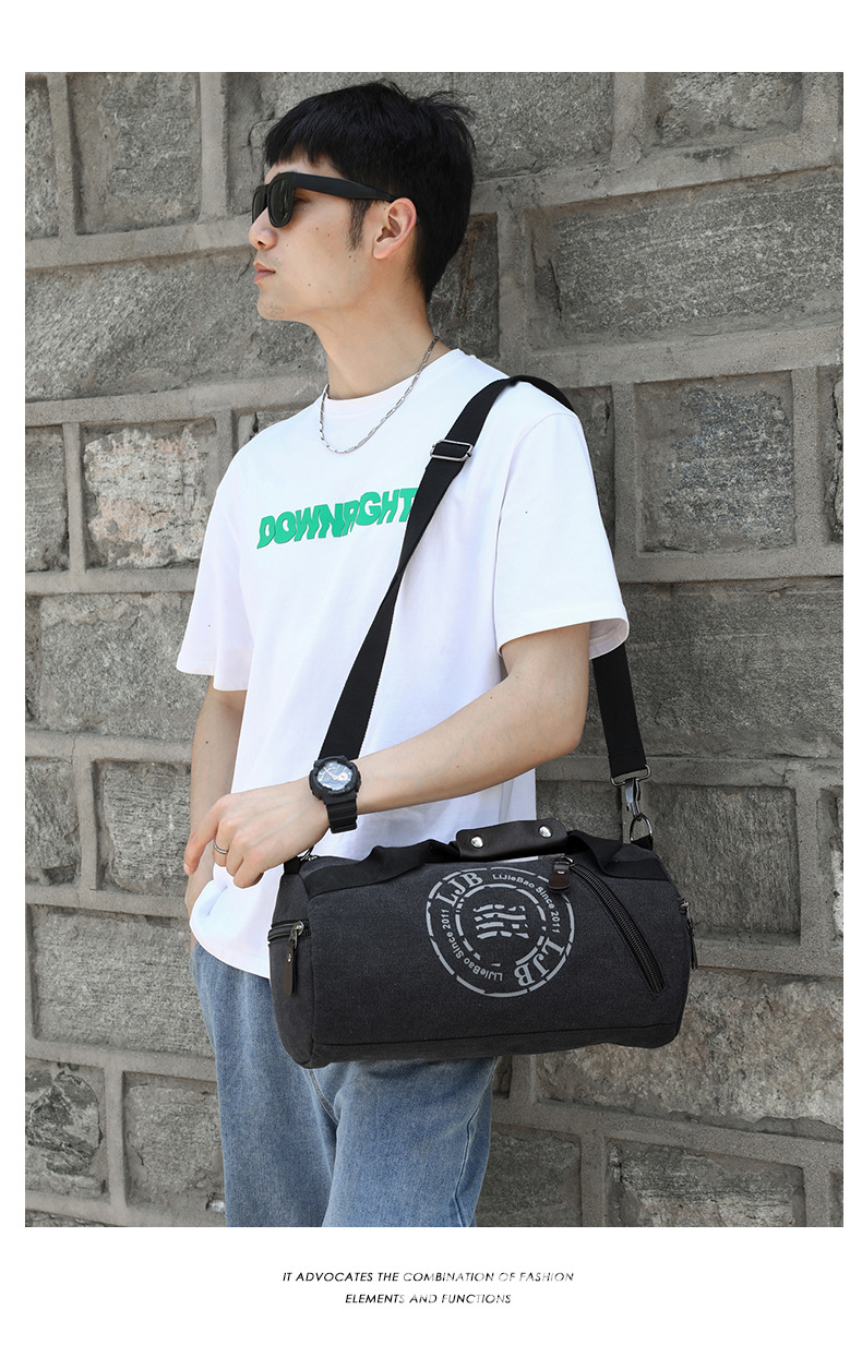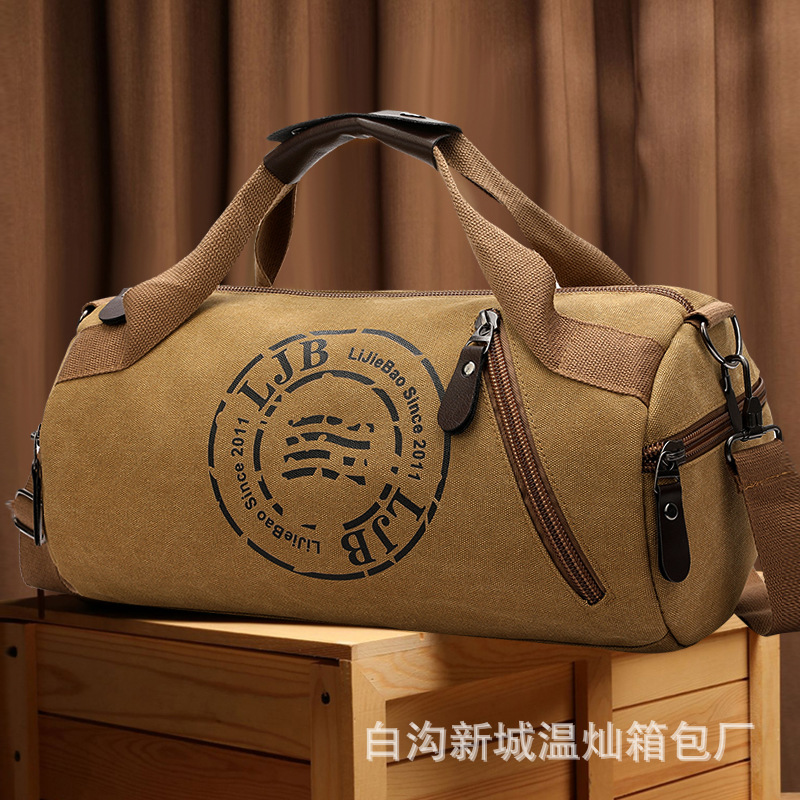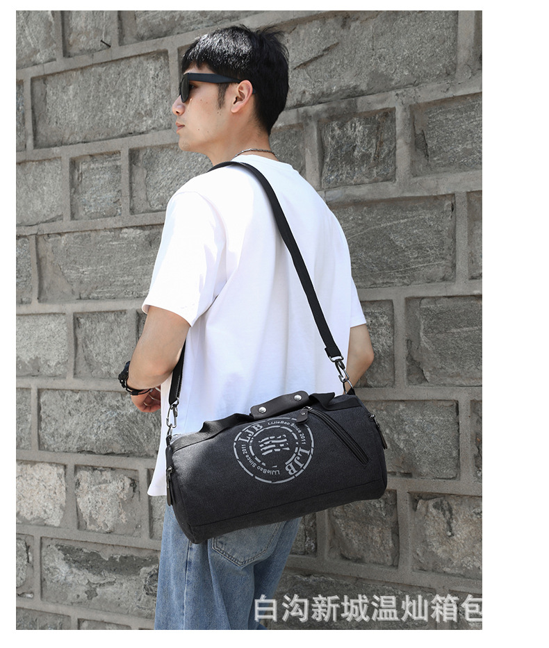 인쇄 가능한 로고 유니섹스 휴대용 단일 어깨 캔버스 원통형 캐주얼 여행 피트니스 의류 가방 크로스 바디 백