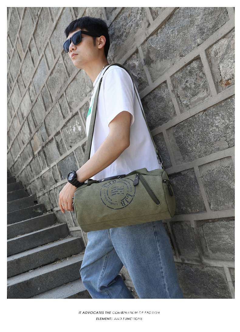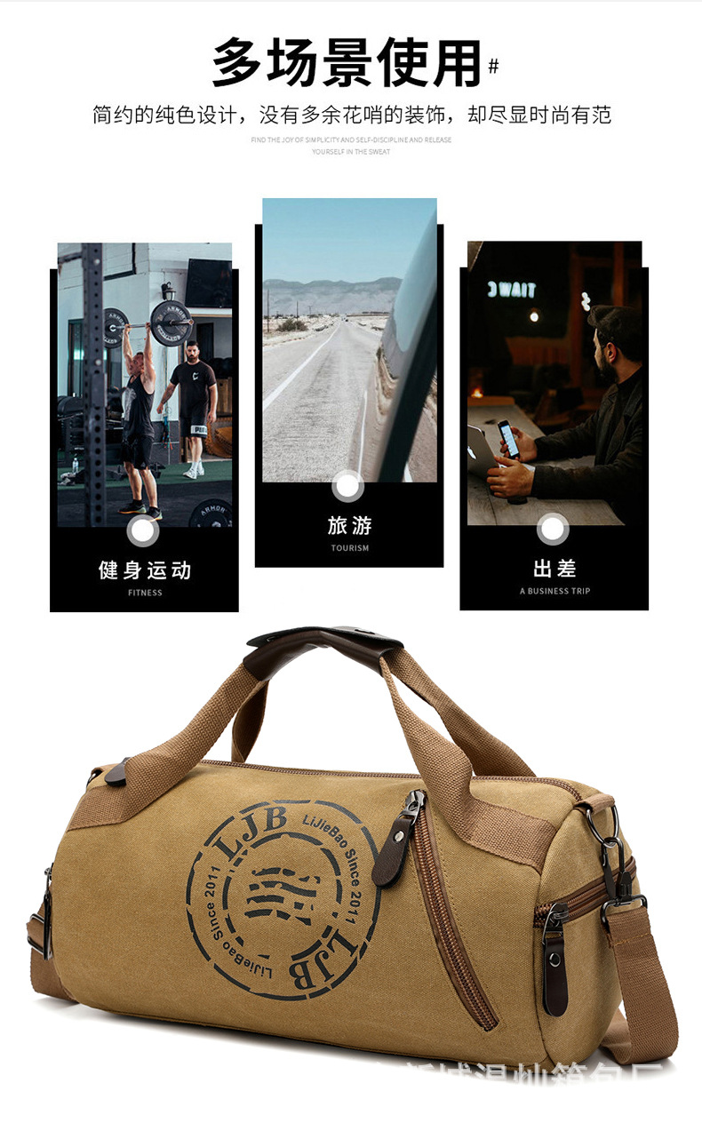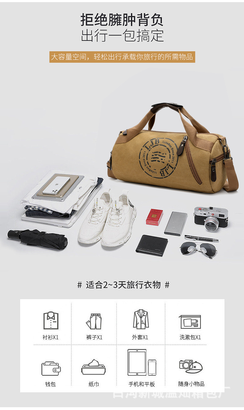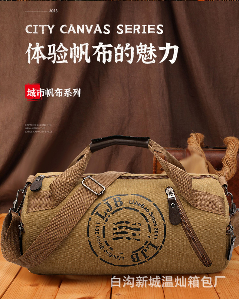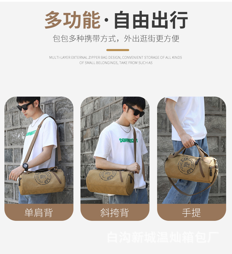 인쇄 가능한 로고 유니섹스 휴대용 단일 어깨 캔버스 원통형 캐주얼 여행 피트니스 의류 가방 크로스 바디 백