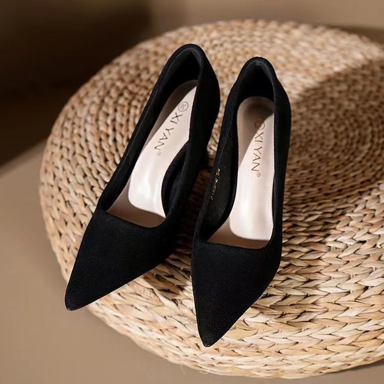 전문 하이힐 신발 여성용 두꺼운 힐 소프트 하단 인터뷰 비행 점유 플러스 사이즈 에티켓 클래스 원피스 신발 통근 스웨이드 작업 신발스토어 가기