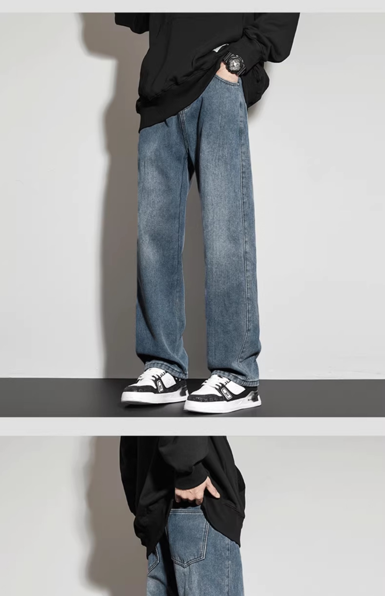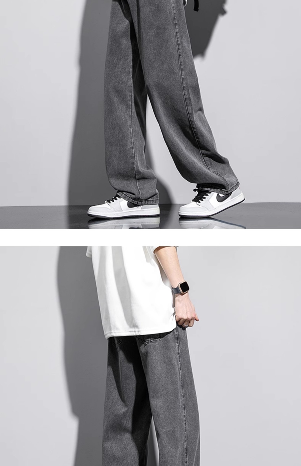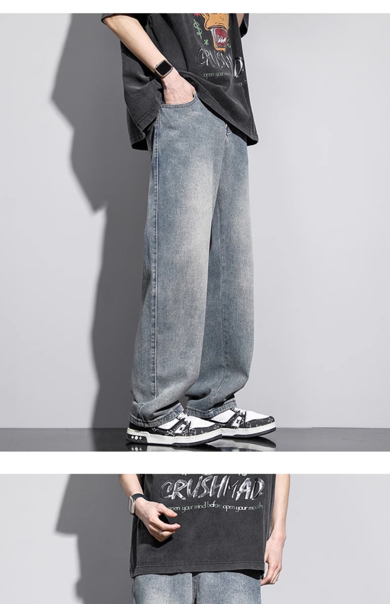 남자 청바지 2024 새로운 남자 레트로 바지 미국 하이 스트리트 남자 여름 얇은 스트레이트 바지스토어 가기