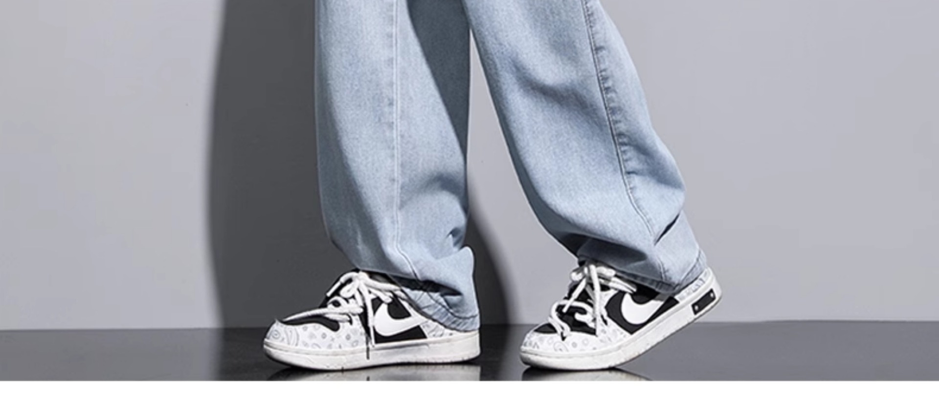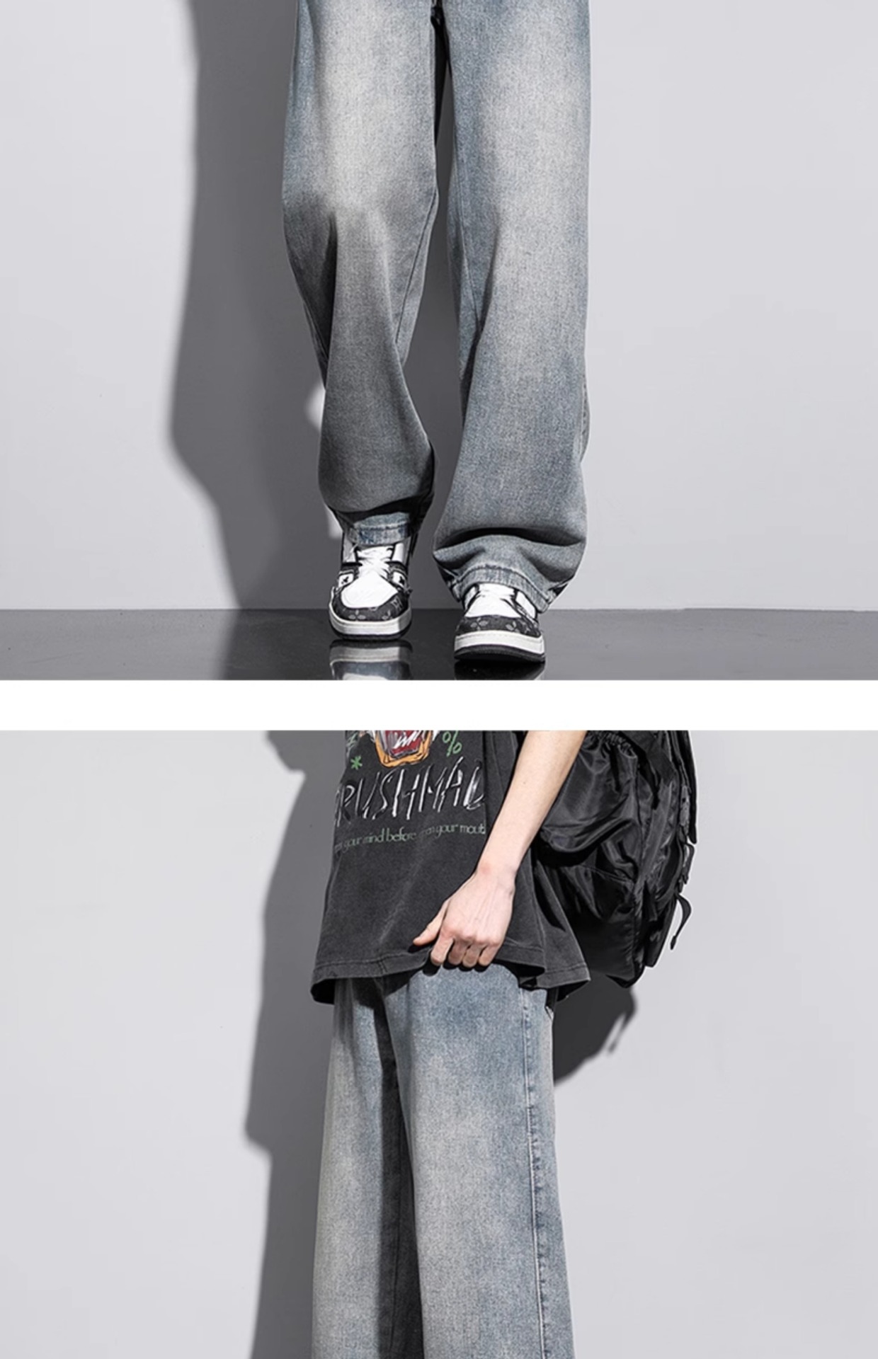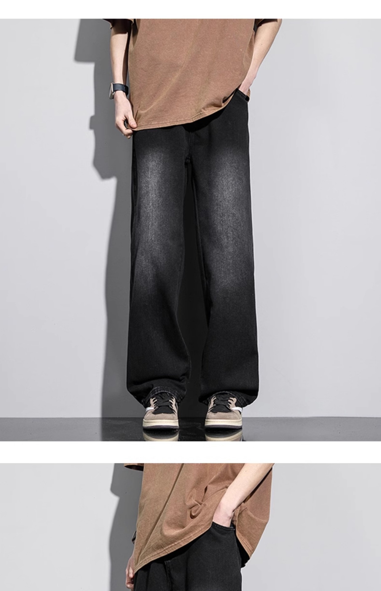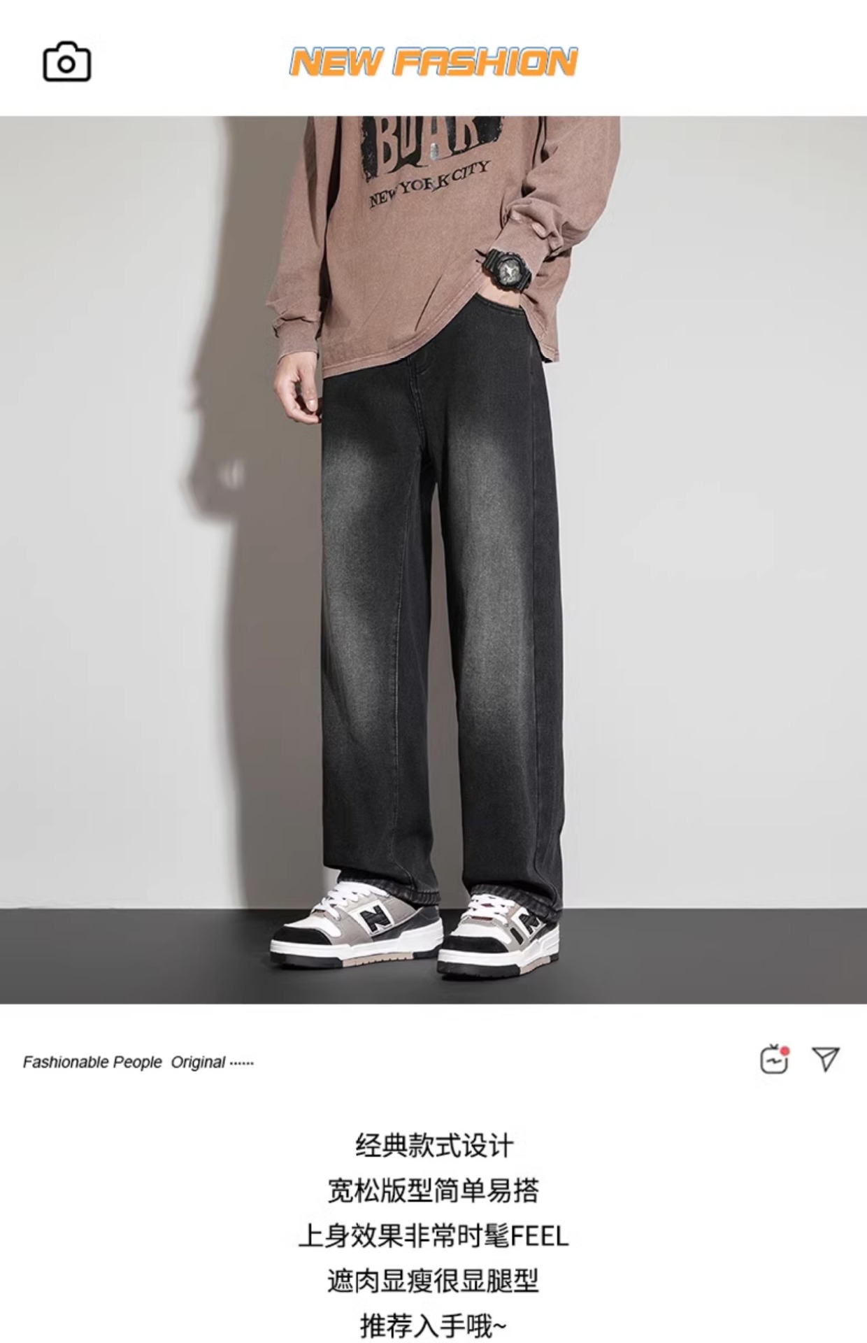 남자 청바지 2024 새로운 남자 레트로 바지 미국 하이 스트리트 남자 여름 얇은 스트레이트 바지스토어 가기