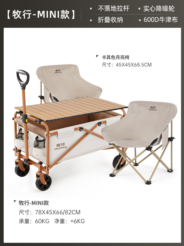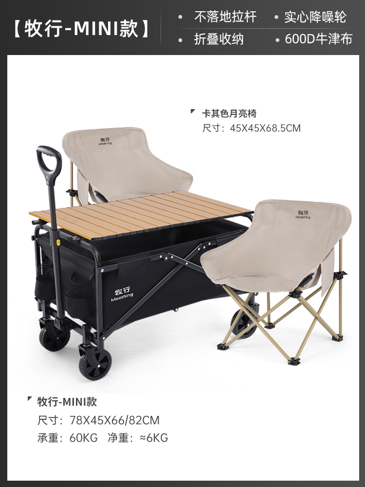 • ♡☼♡⊕✚☼【노점 패키지】 오닉스 블랙 + 원목 상판 + 카키색 달 의자 * 2♡☼♡⊕✚☼